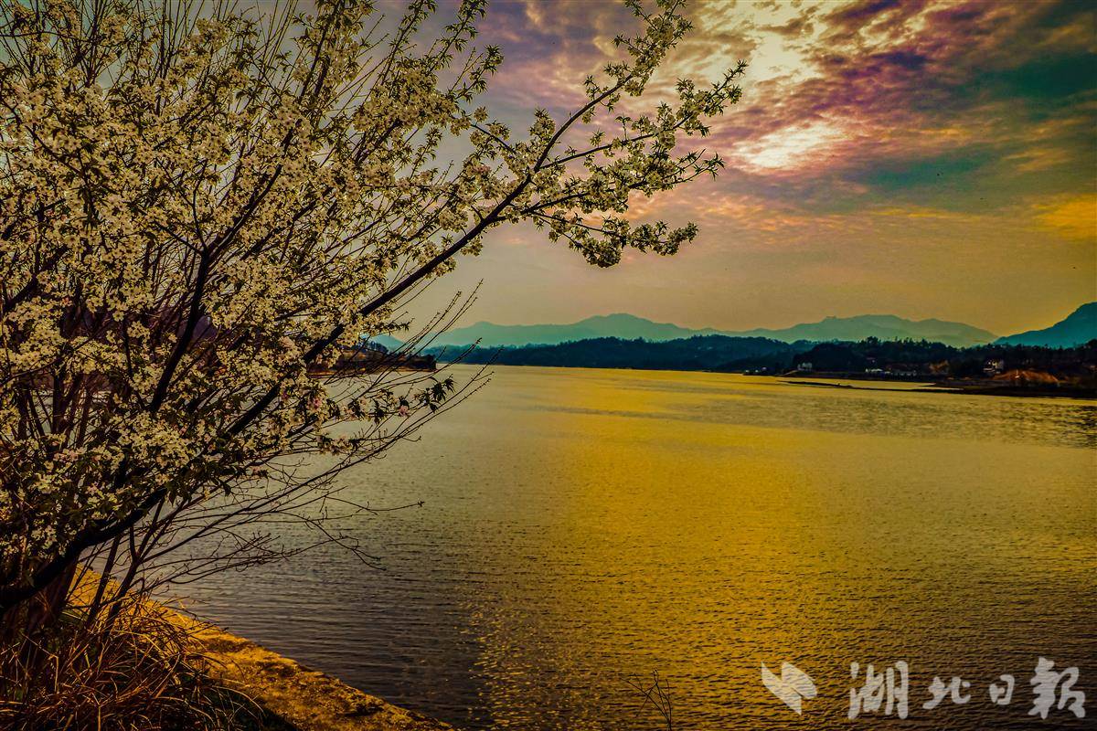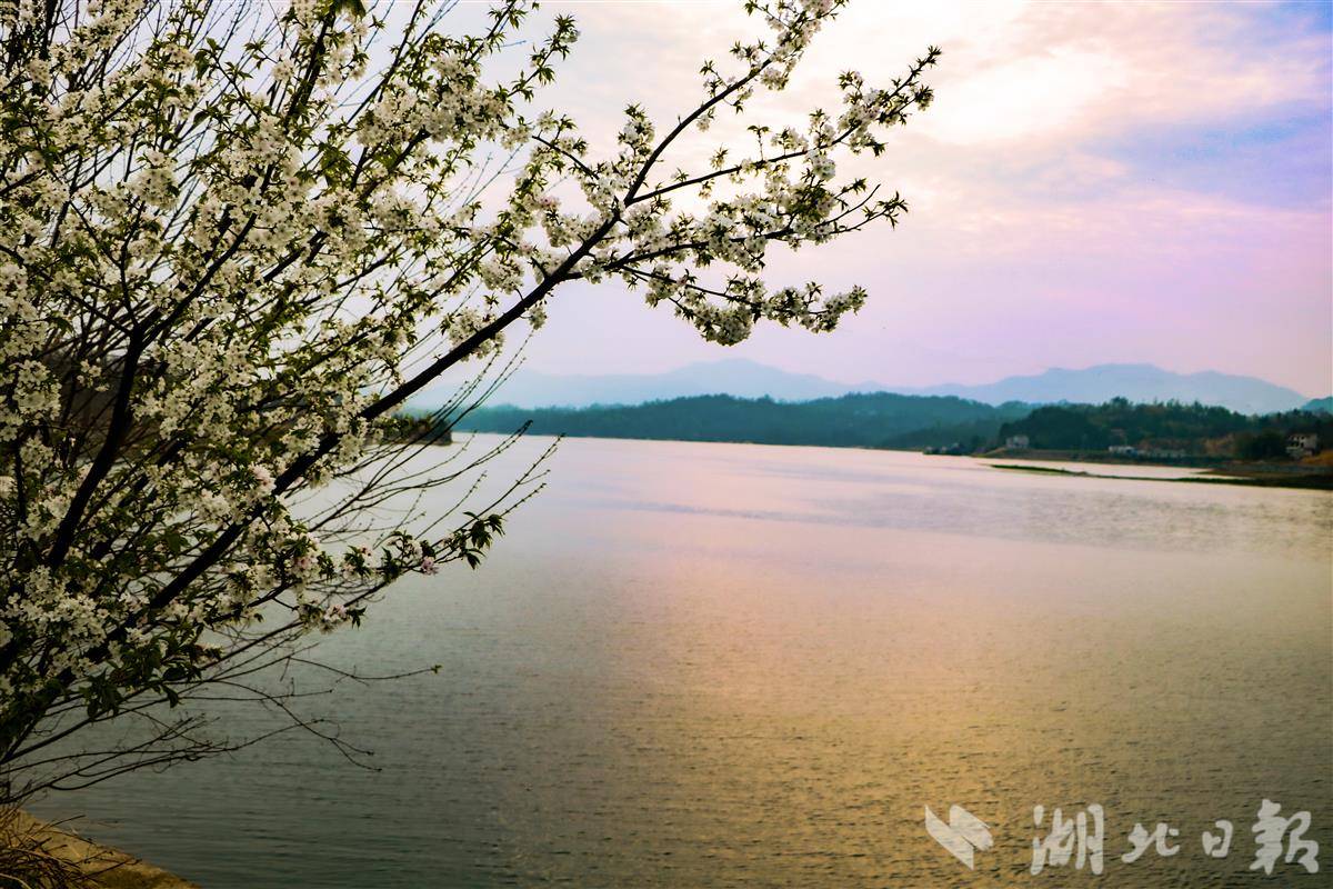 湖北日报讯(通讯员付向阳)3月25日,黄昏时分,白莲河畔的英山县方家咀乡四棵枫村枫花渡口,一树树梨花在夕阳中绽放, 花瓣洁白、花蕊嫩黄,微风拂过,花香清甜惹人醉,与当地的油菜花、樱花、村落、田园、河水交相辉映,形成一幅优美的春日图景,吸引大批周边市民与游客前来踏青赏花、拍照打卡,当地乡村旅游持续火热。