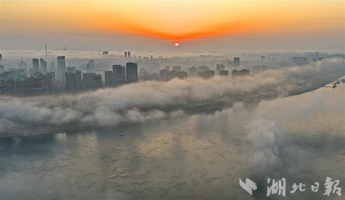 雨霁初晴,水汽蒸腾,缥缈的云雾在长江江面与城市楼宇间缓缓流动、舒展。