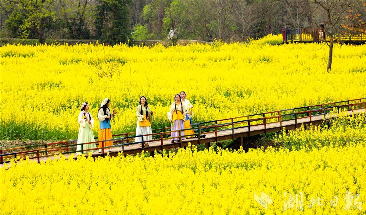 近日,武汉市黄陂大余湾景区迎来一年中最绚烂的季节,清水河沿岸300多亩油菜花全面进入盛花期,金黄的花海与古村、新村交相辉映,构成一幅动人的春日画卷。最佳观赏期将持续至4月中旬,吸引众多游客和摄影爱好者前往打卡。(视界网 张美德 摄)