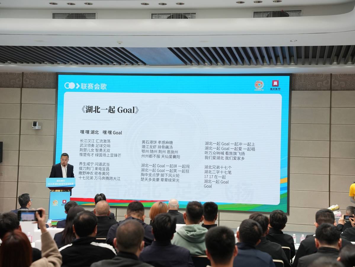 3月26日上午,武汉中国车谷国际体育文化交流中心。湖北省城市足球联赛官宣仪式现场,这首熟悉的旋律再次响起。与联赛logo、吉祥物、奖杯一同揭晓的,还有两首会歌——《湖北17Goal》和《足梦湖北》。
