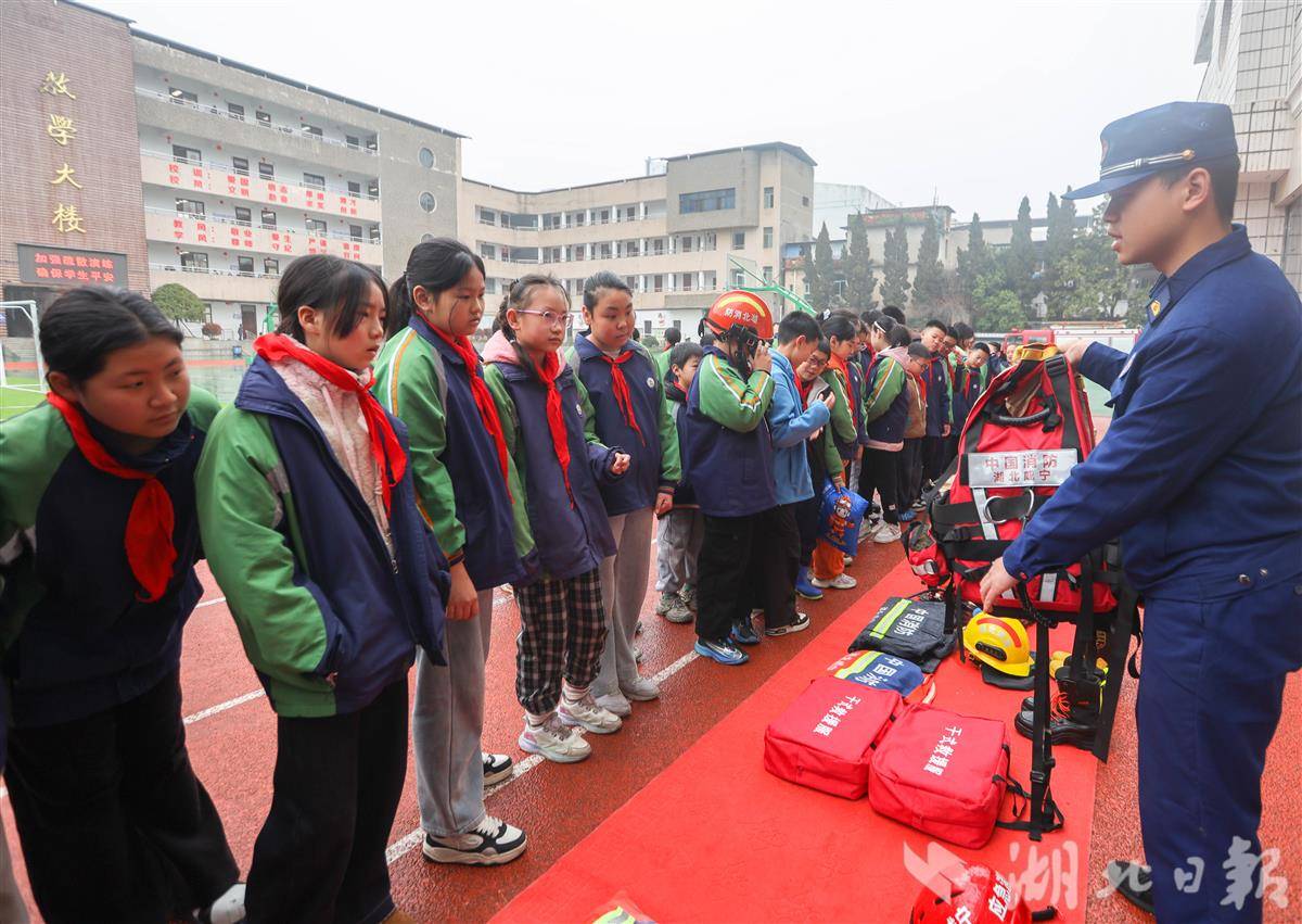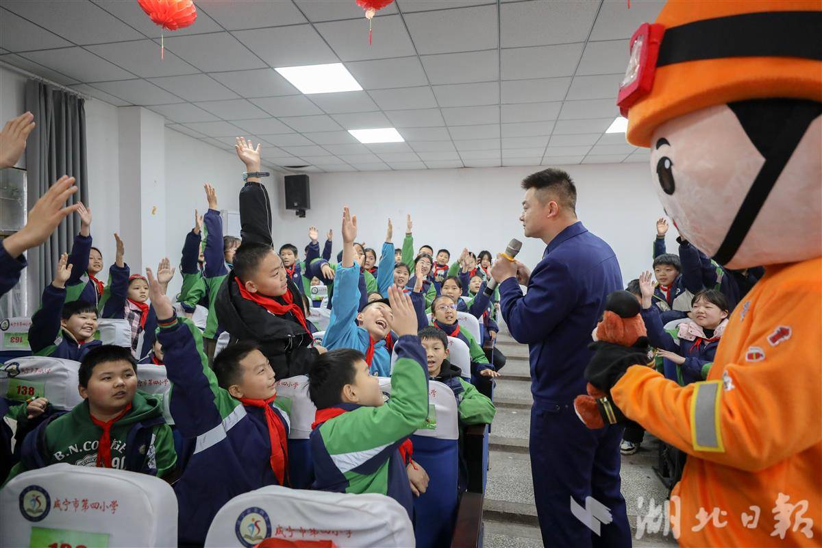 湖北日报讯(记者童晨曦、通讯员董帅、李静书、刘璇)3月24日,咸宁市第四小学的操场上,来了几位“特殊”的安全员——憨态可掬的消防人偶一亮相,瞬间点燃了孩子们的热情,也拉开了“安全护航成长,责任守护未来”全国中小学生安全教育日活动的序幕。