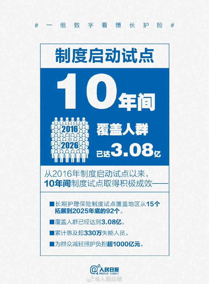 3月25日,《关于加快建立长期护理保险制度的意见》发布,长期护理保险制度开始全国推行。保险费率多少?有多少服务项目?哪些场所可以提供照护?一组数字,带你了解↓↓