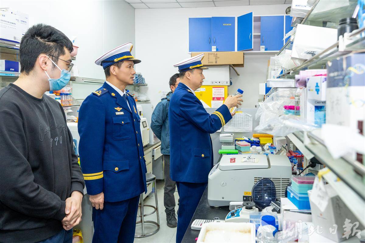 在武汉大学,检查组首先对学生宿舍楼进行了消防安全检查,并现场测试消火栓水压,随机抽查宿舍管理员对灭火器材熟悉程度。董新明总队长强调,火灾发生后,安全保卫人员必须及时到岗,掌握灭火流程,确保第一时间有效处置。随后,检查组来到生命科学学院生物实验室,仔细查看了化学品的存放管理,询问工作人员实验室火灾处置操作规范和相关消防应急处置流程。双方还就成立联合实验室,构建“一体双翼”智慧消防新体系的相关问题进行了探讨。