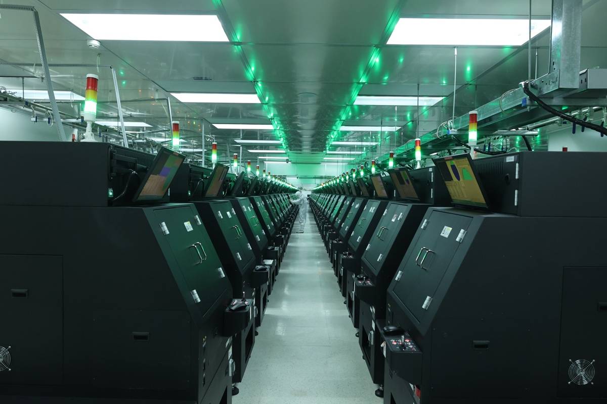 走进测试车间,约800台测试机台正对每一颗LED芯片进行电性与光性的全检,为下游提供精准的可靠性数据。“目前月产能13万片4寸LED芯片、2000片6寸Micro LED芯片。”现场负责人介绍,这座工厂是三安光电Mini/Micro LED最新、最大、最先进的生产基地,眼下生产如火如荼,MiniRGB芯片今年还将扩产30%。