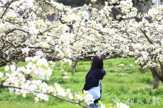 春日的黄坪村,一步一景皆是诗。连片的梨花层层叠叠,与错落的土家民居、翠绿的茶园相映成趣,吸引了大批游客慕名而来。大家或制作手工画扇,或漫步花径、定格美景,还有不少游客参与趣味运动中,在春日的复苏生机中重拾活力。