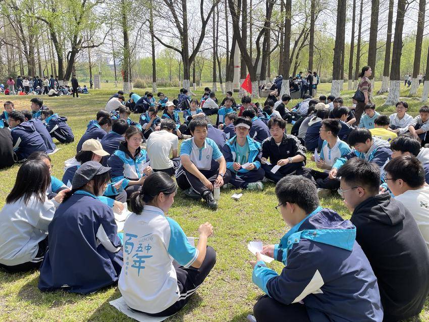 襄阳五中学生在月亮湾公园踏青游玩。(湖北日报通讯员 陈艳 摄)