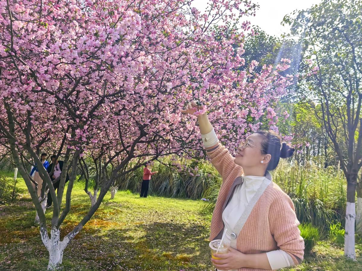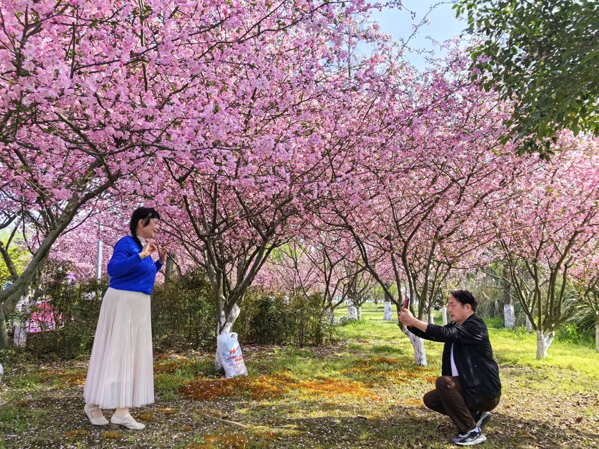 粉色的海棠、白色的早樱、嫩绿的草地……3月27日,襄阳市樊城区月亮湾公园春意盎然、百花次第绽放,吸引不少游客打卡露营。