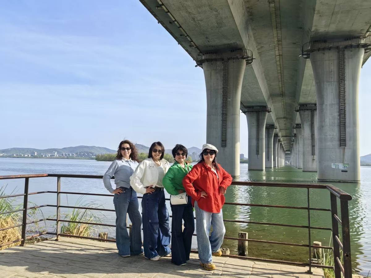 游客在月亮湾公园打卡“时光隧道”。(湖北日报全媒记者 张慧华 摄)