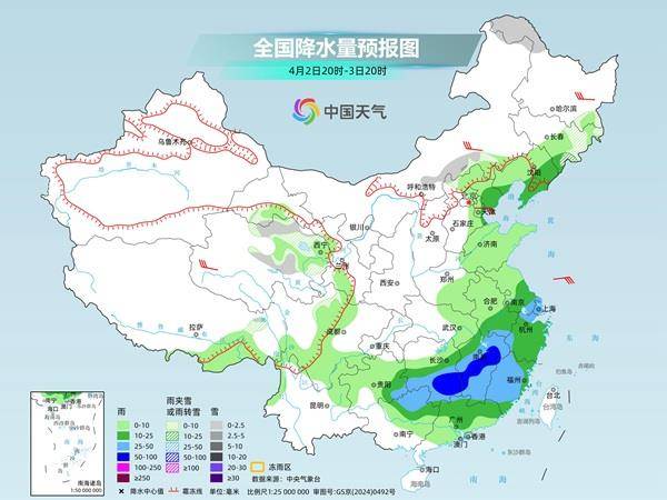 展望后期,4月2日—4日,江南、华南北部以及贵州等地有中到大雨,局部暴雨或大暴雨。