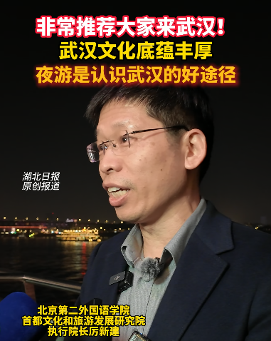 3月27日晚,与会嘉宾夜游武汉,北京第二外国语学院首都文化和旅游发展研究院执行院长厉新建乘游船缓缓穿过长江大桥,他不禁感慨道:“江汉揽胜路线将人们最熟知的武汉IP整合成线性体验,让游客在动线中沉浸式感受城市魅力,这是一种极具示范价值的发展方式。”