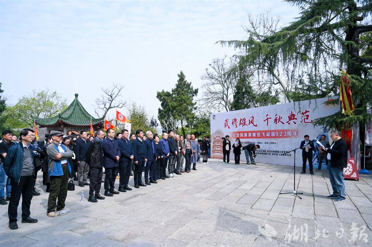 当日,由武汉市社科联、武汉市社科院、黄鹤楼公园管理处、黄鹤楼文化旅游发展有限公司与武汉岳飞文化研究会共同主办的“武穆雄风,千秋典范 ——纪念民族英雄岳飞诞辰923周年”活动在此举行。相关领导嘉宾、岳飞后裔代表及各界人士近百人齐聚一堂,共同缅怀这位伟大民族英雄的爱国精神与英雄风骨。
