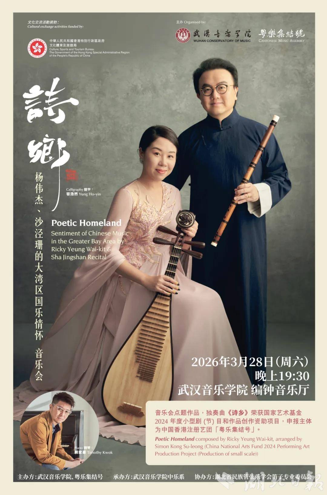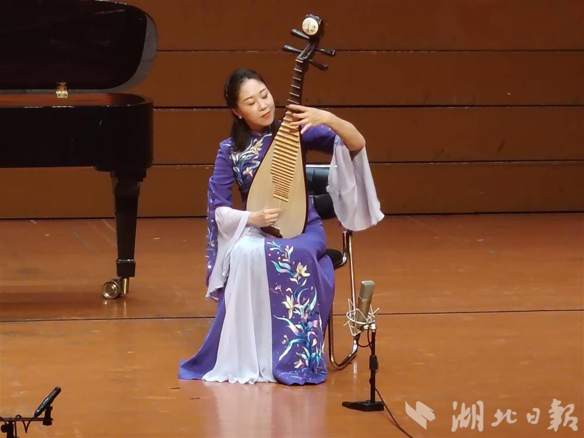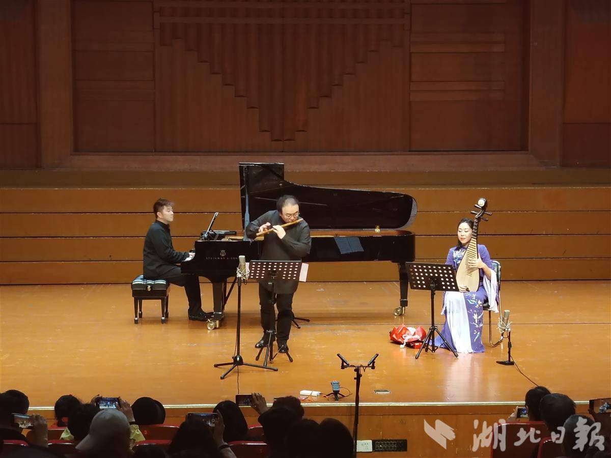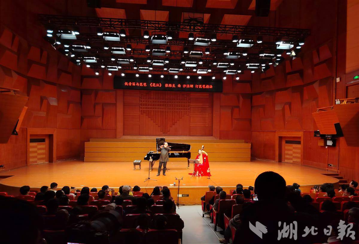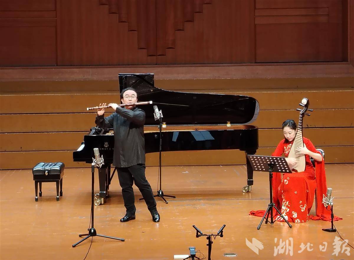 湖北日报讯(记者农新瑜)音乐厅内,笛箫悠扬、琵琶婉转,一曲终了,掌声如潮,全场观众深深陶醉在美妙国风之中。3月28日晚,《诗乡——杨伟杰、沙泾珊的大湾区国乐情怀》音乐会在武汉音乐学院编钟音乐厅精彩上演。作为粤港澳大湾区与湖北的文化艺术交流活动之一,这场公益开放的高水平音乐会,吸引了众多观众前往现场观摩聆听。