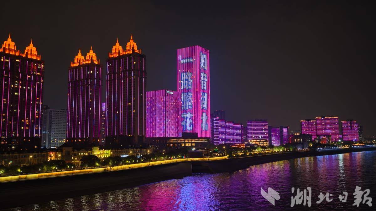 “知音湖北 长江之夜”“知音湖北 一路繁花”“浪漫武汉 一路生花”主题长江灯光秀惊艳上演,灯光流转间,一句句饱含城市气质与文旅情怀的宣传语在龟山电视塔、两岸地标楼宇上闪耀滚动,传递荆楚大地的春日邀约。