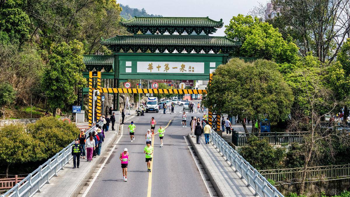 咸宁马拉松选手穿越温泉景区。(赛事组委会供图)