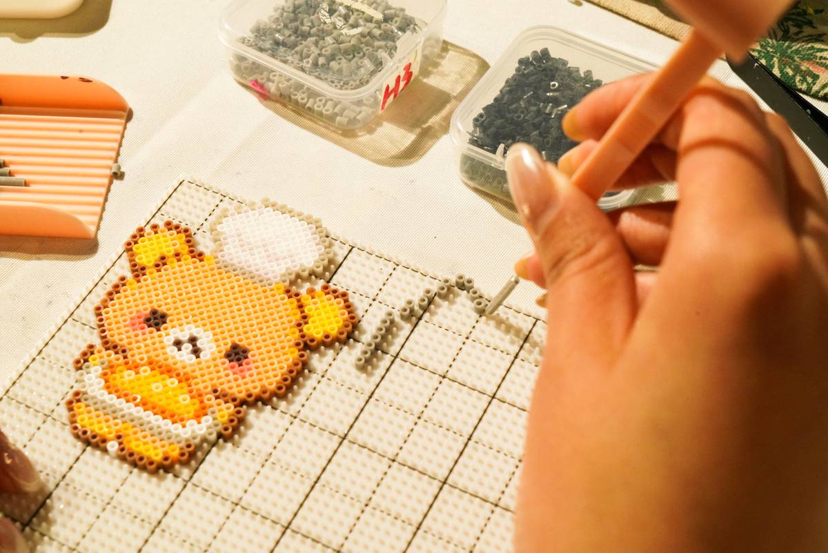 湖北日报讯(记者赵怡然 、实习生蒙宇浩)拿起镊子,夹起彩豆嵌入板中;盖上烫纸,用电熨斗熨平;揭开纸,一个亲手拼的挂件就躺在手心……3月21日下午,襄阳603文创园一二三造物所小店里,17岁的艺涵专注地摆弄着五颜六色的小塑料颗粒,她要把好朋友的名字做成拼豆挂件。如今,拼豆已成为年轻人新的社交货币,襄阳拼豆店更是一座难求。