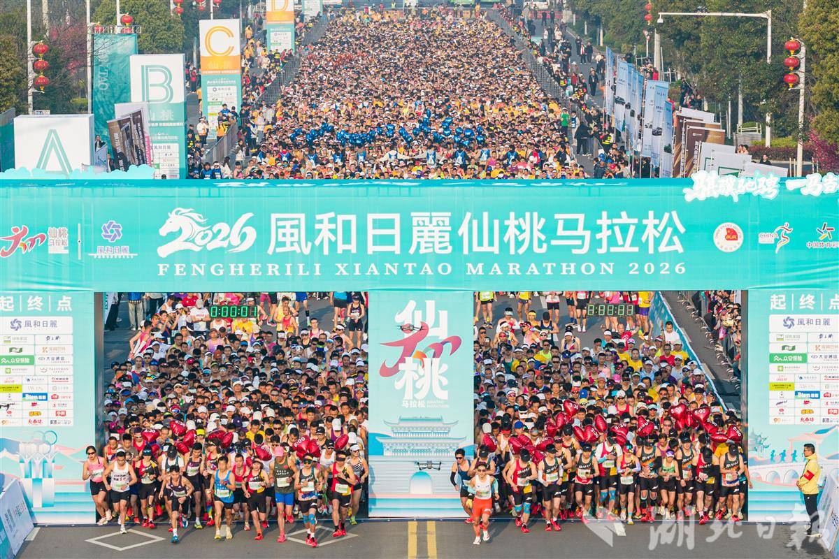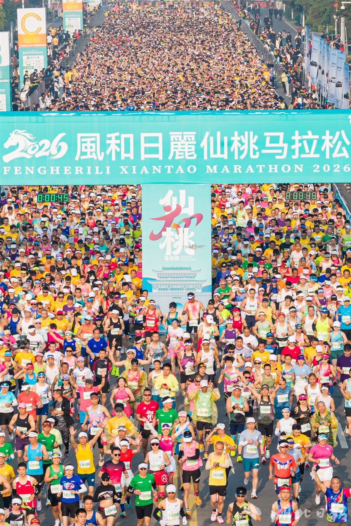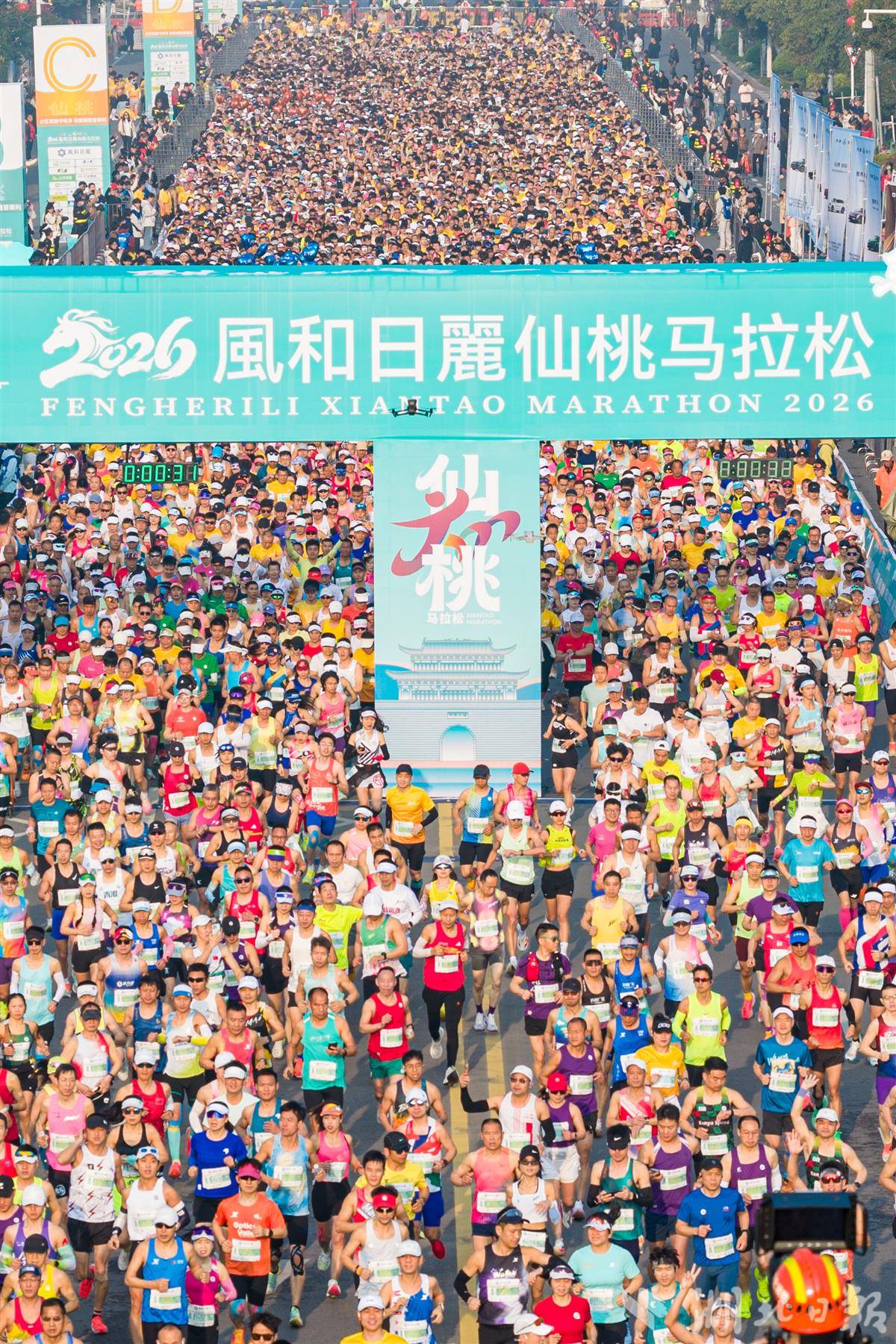 3月29日7时30分,2026仙桃马拉松鸣枪开跑。(湖北日报全媒记者 任勇 摄)