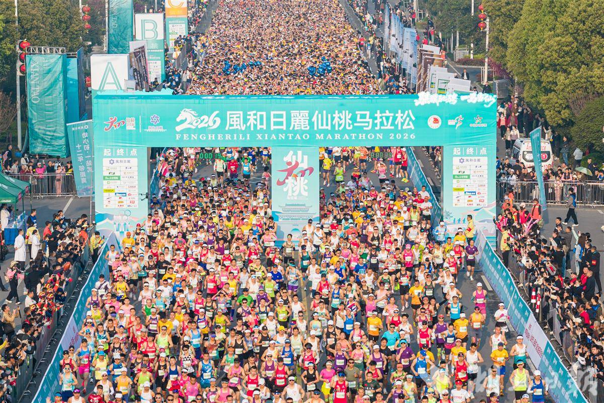 3月29日7时30分,2026仙桃马拉松鸣枪开跑,来自全国34个省份的1.2万名跑者齐聚仙桃,用奔跑的步伐丈量江汉明珠的城市魅力。(湖北日报全媒记者 任勇 摄)