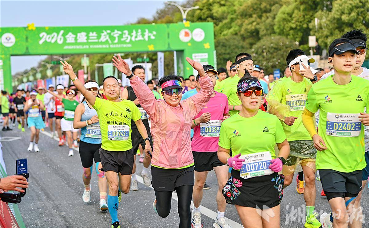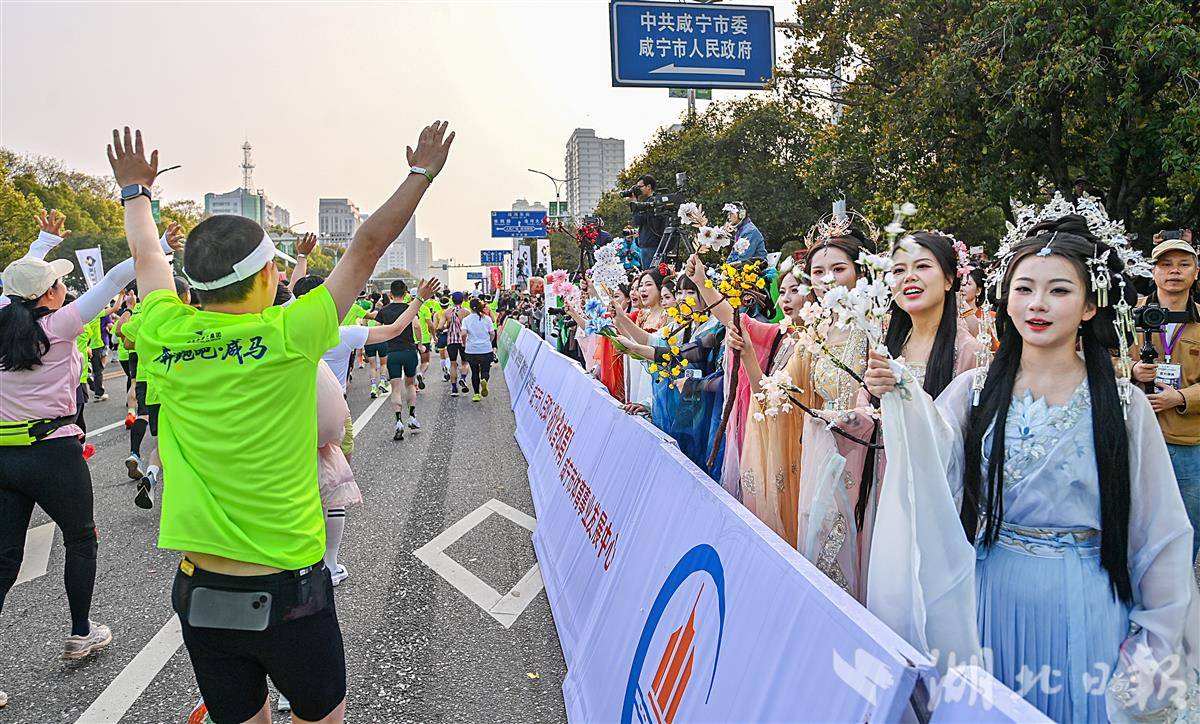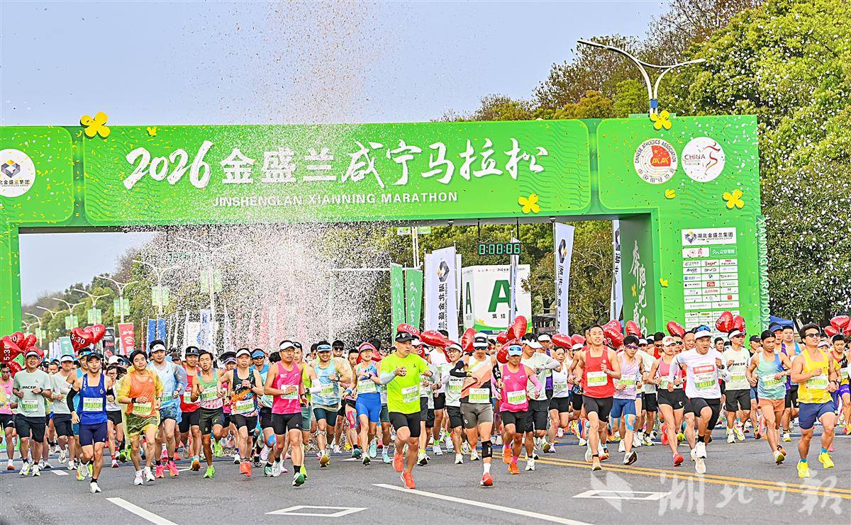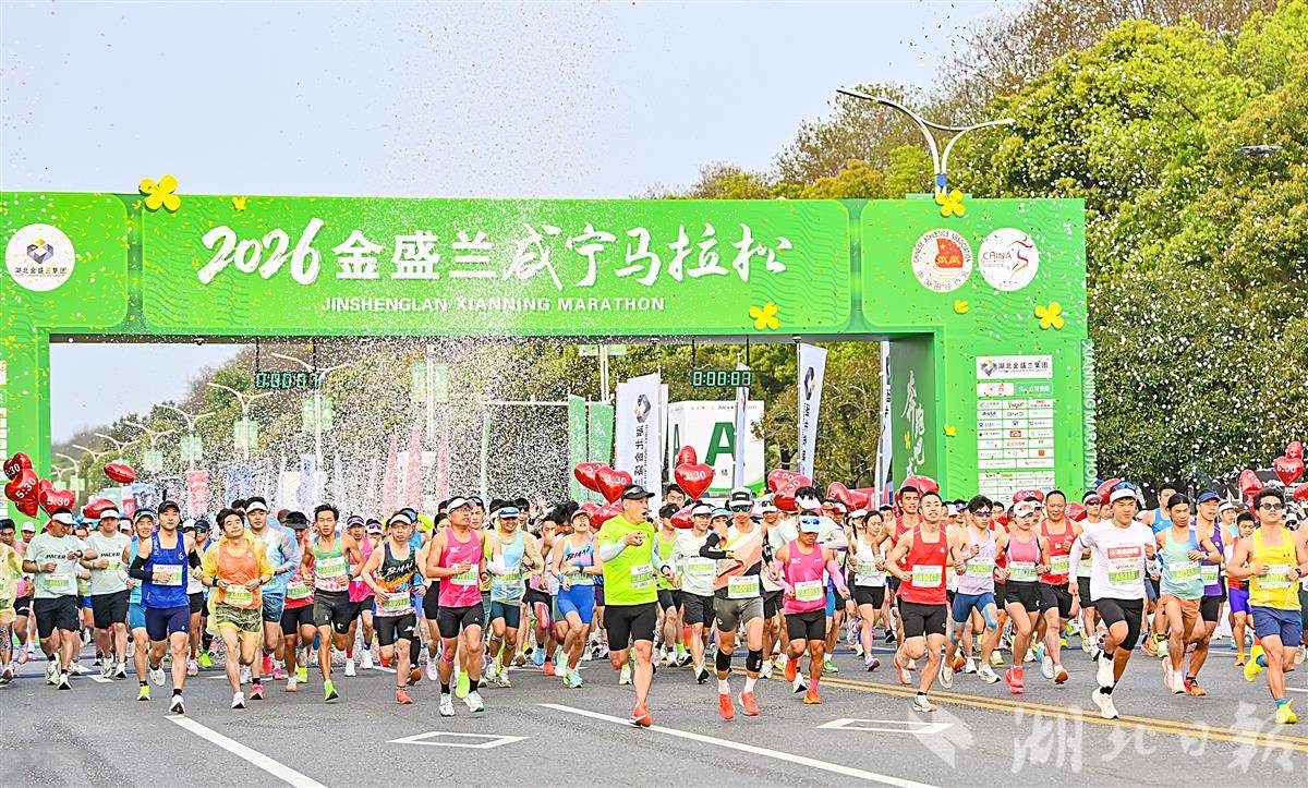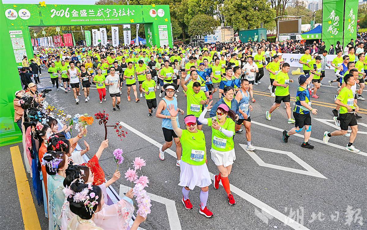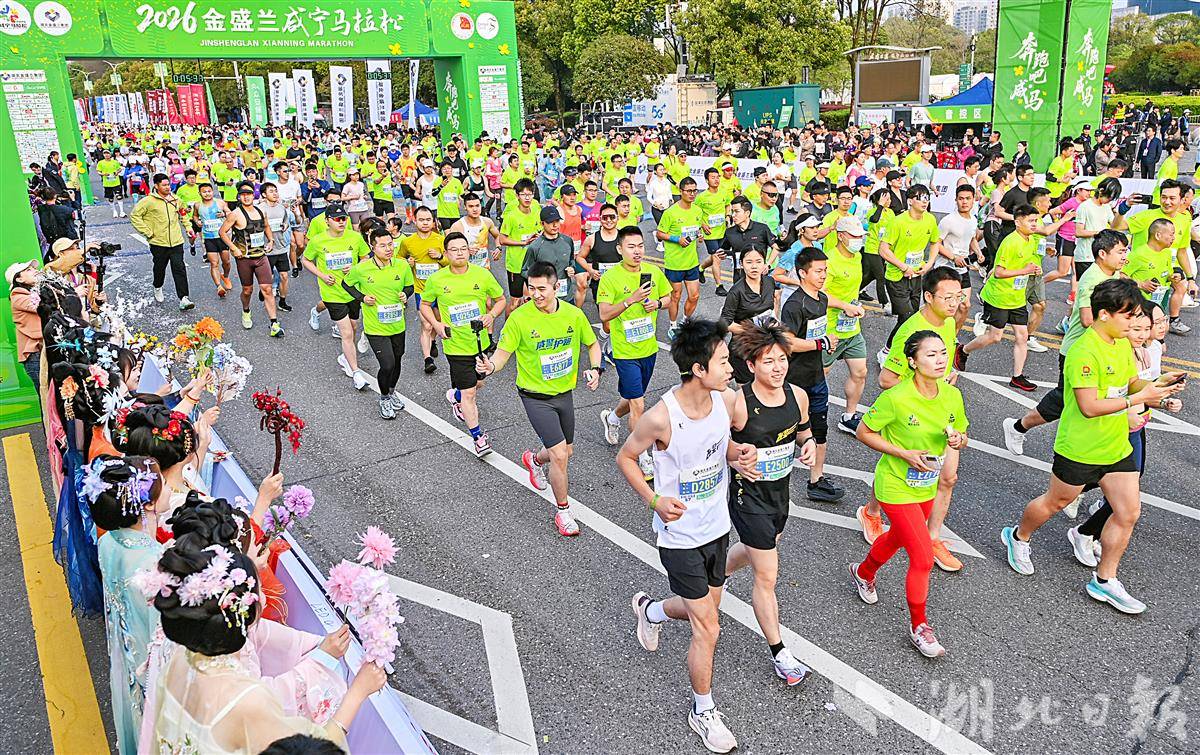 本届赛事以“奔跑吧·咸马”为主题,深度融合“泡温泉、赏樱花”等城市特色元素,通过系统化升级与一系列配套活动,为广大跑者呈现一场兼具竞技水准与城市温度的体育盛会。(湖北日报全媒记者 朱熙勇 摄)