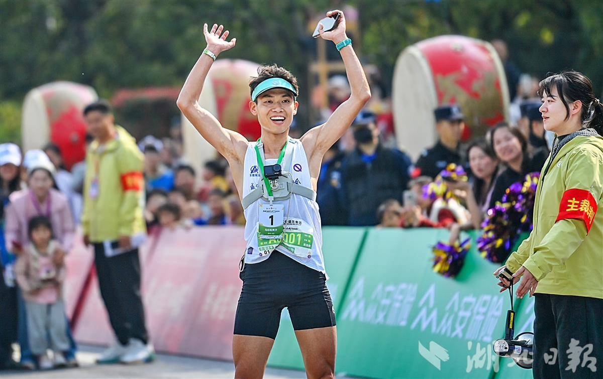 咸宁本土选手吴浩然以2小时23分45秒的成绩,夺得全程马拉松男子组冠军。