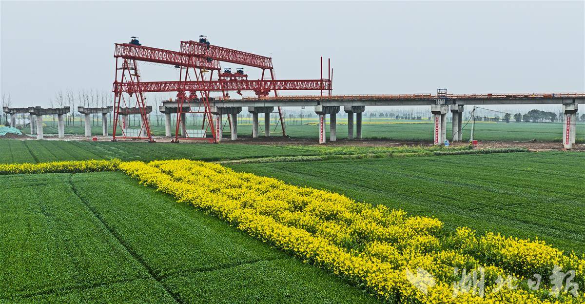 3月24日,二广高速荆州绕城段弥市镇片区工程有序推进,项目主体如巨龙穿越麦田,各分项工程建设成效显著。