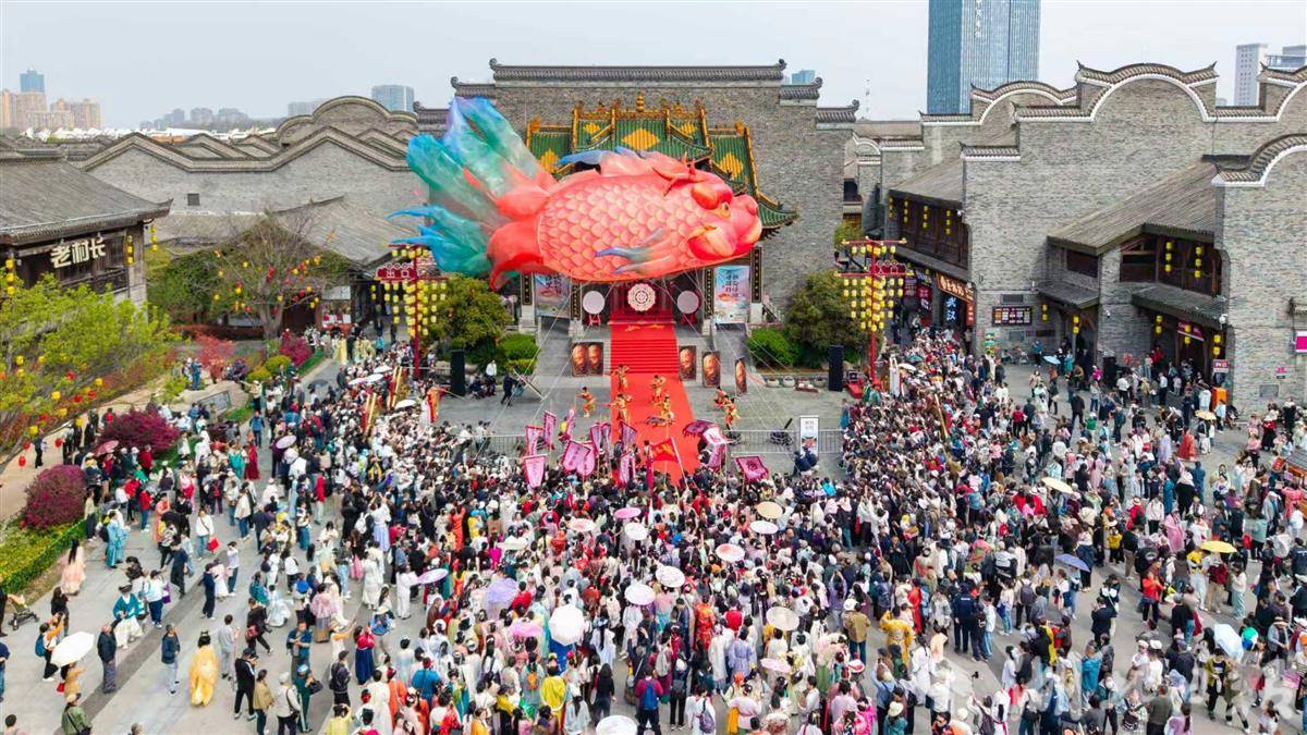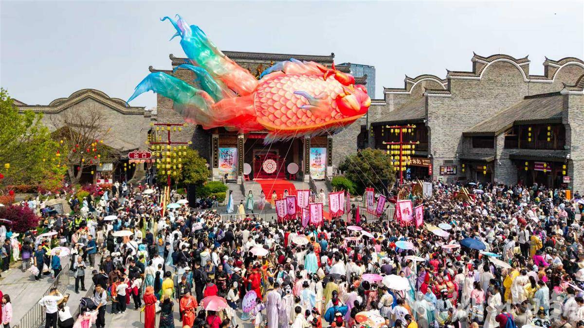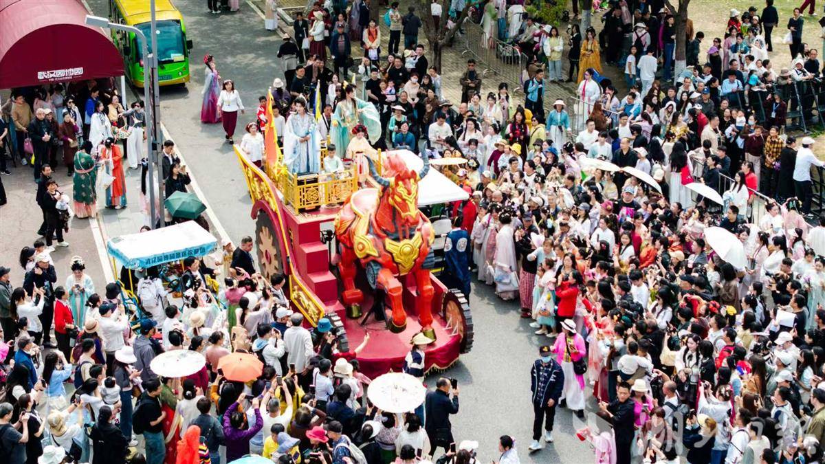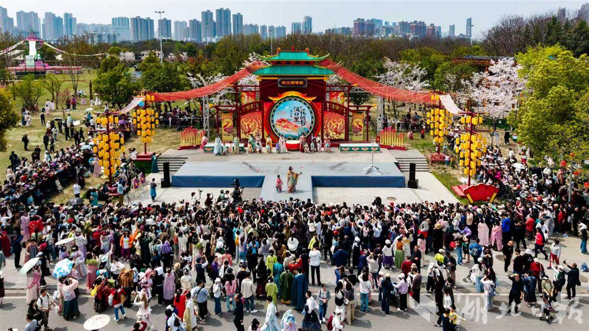 本届花朝节将持续至5月5日,融汉服巡游、樱花鳌鱼巡游、朝代婚典、水上汉婚、非遗火壶等活动于一体,16个重点景区将开放夜场至21时,为市民游客献上春日文旅大餐。(视界网 张美德 摄)