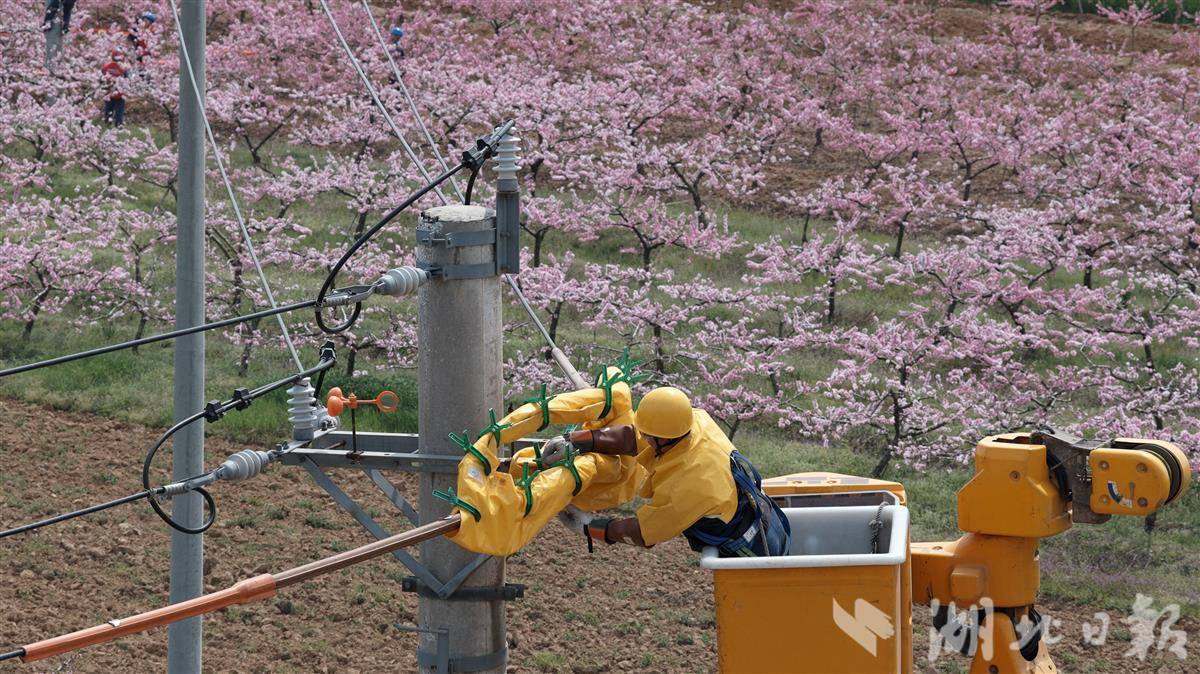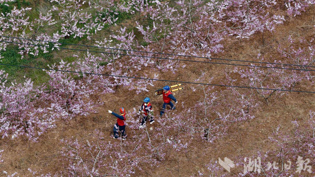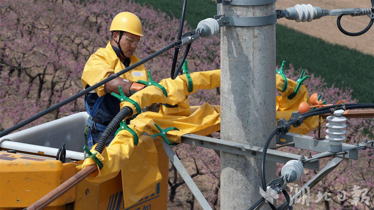 3月29日,湖北电力襄阳枣阳楚天星火共产党员服务队穿梭在乡村田野间,开展春季线路专项巡检与带电作业工作。