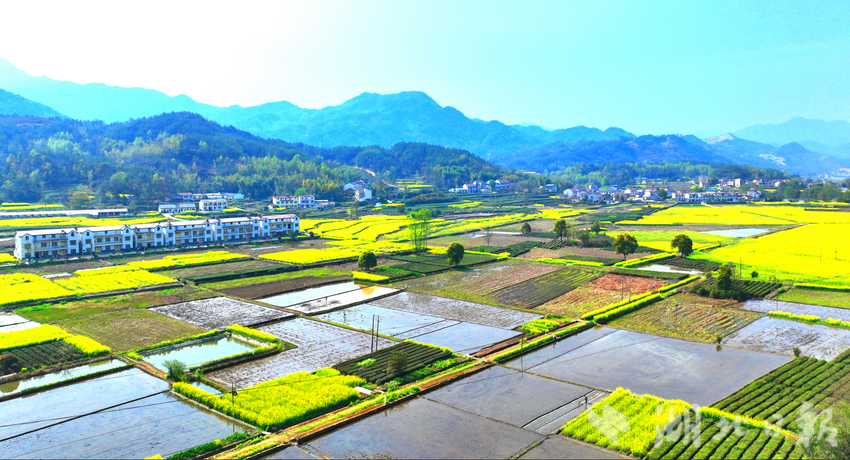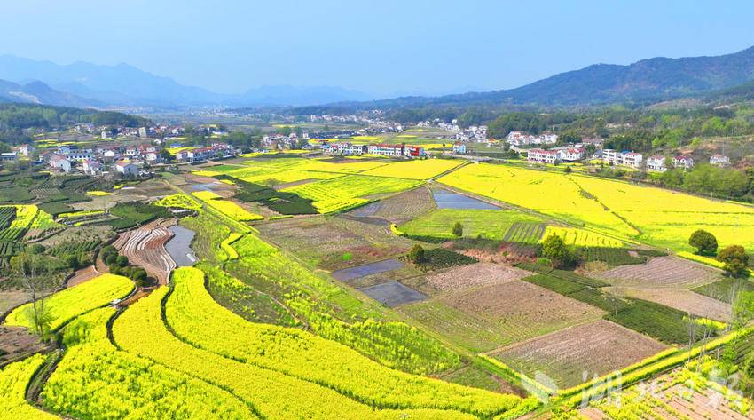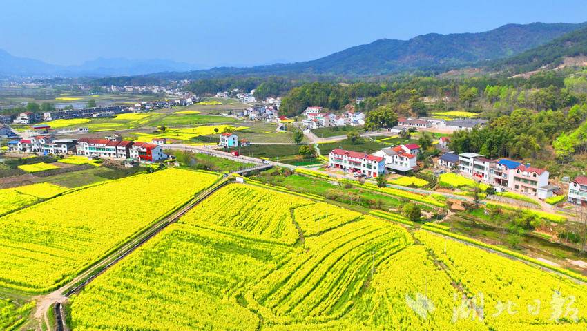 湖北日报讯(通讯员付向阳、陈云峰)3月29日,空中俯瞰,英山县南河镇3000亩油菜花开美如画。