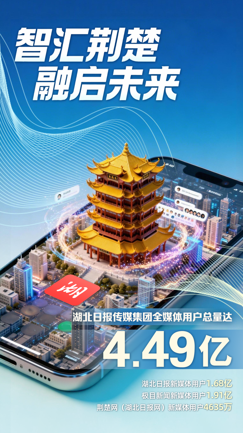 3月26日,“智汇荆楚 融启未来——湖北日报区域超级传播平台宣介活动”在武汉举行,大会现场公布:湖北日报传媒集团全媒体用户总量达4.49亿,其中湖北日报新媒体用户量达1.68亿。