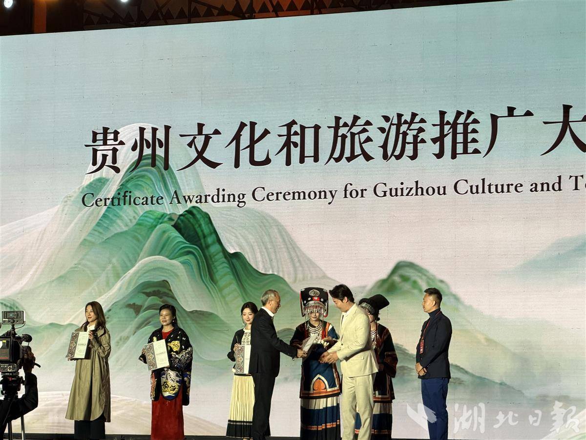 贵州旅发大会开幕式上,歌手周深、歌唱家龚琳娜、演员毛晓彤、企业家何超琼、歌唱家张英席被授予“贵州文化和旅游推广大使”称号。