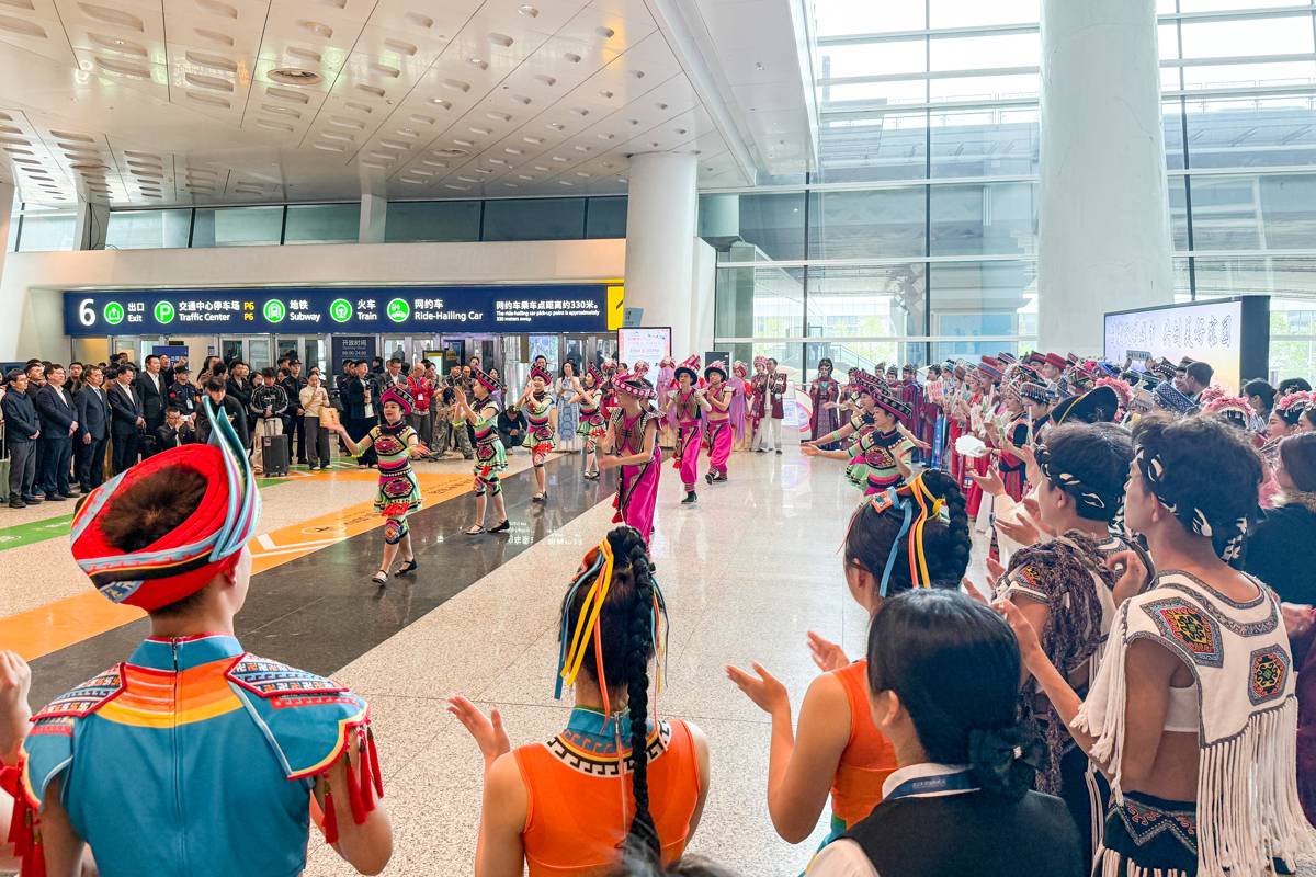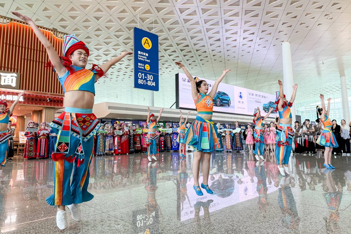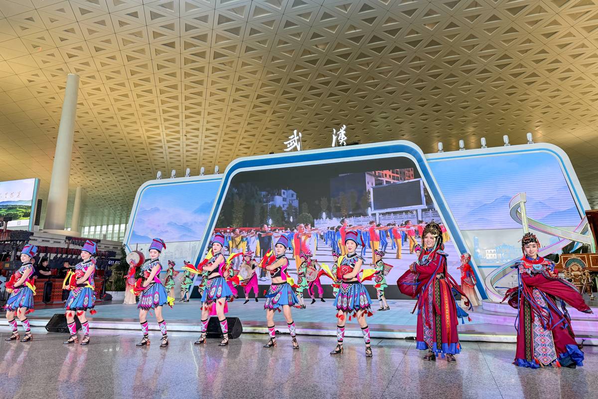 恩施土家风情的精彩演出在武汉天河机场航站楼内轮番上演。