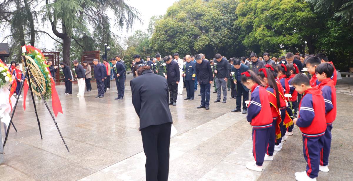 在向警予烈士雕像前,退役军人事务系统干部职工、军休干部、夏明翰小学红领巾讲解员代表及各界群众数百人庄重肃立,全体人员集体默哀、鞠躬行礼,并依次向烈士敬献鲜花,寄托哀思。