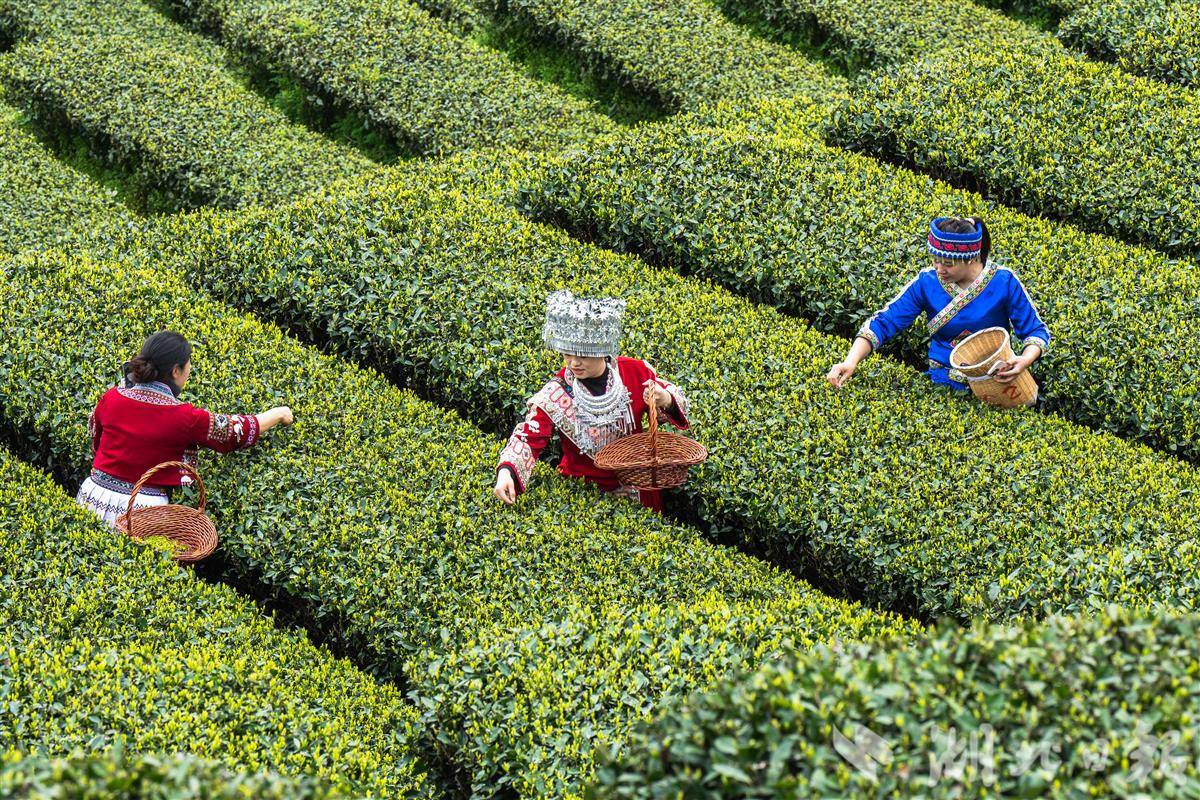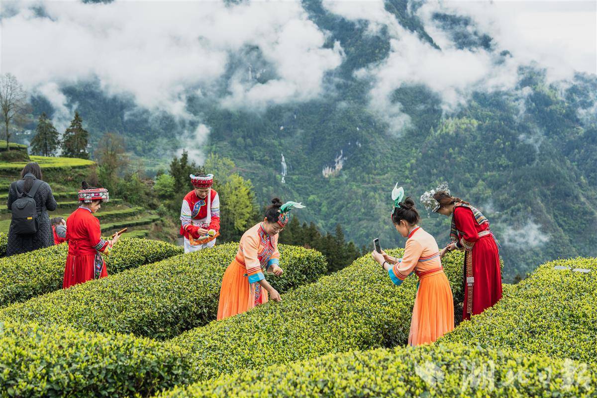 3月30日,来自恩施州八个县市的百名采茶女、扎根乡土的“村花主播”和乡村振兴路上的“她力量”,云集恩施市花枝山村,举行茶艺展演、硒茶品牌推介等活动,开启“恩施硒茶·品上好茶”2026年恩施州百名村花26天线上带货卖春茶直播大赛。近年来,恩施州立足生态优势、富硒优势、文化优势,推动名优茶出省、大宗茶出海,全州茶产业实现跨越式发展,茶园总面积达182万亩,稳居湖北省首位、全国前列,茶产业综合产值突破300亿元,带动80余万茶农增收致富。(视界网 文林 摄)