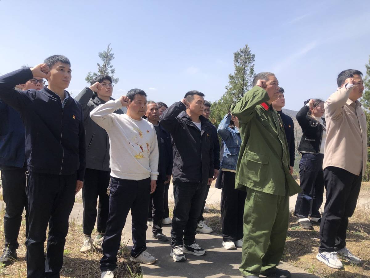 3月27日,杨台村无名烈士墓前,十堰市郧阳区刘洞镇党员干部正重温入党誓词,声音铿锵。人群中,一位身着军装的老人格外引人注目。
