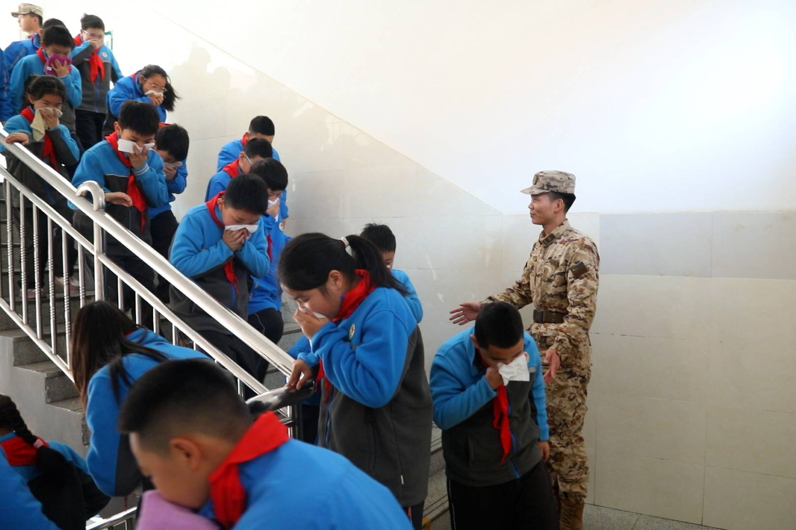 随着警报声急促响起,火灾逃生应急演练正式开始。在统一指挥下,同学们迅速用湿毛巾捂住口鼻,弯腰低姿、紧贴墙体,沿着预定路线快速有序撤离。整个过程紧张有序、规范高效,无拥挤、无慌乱,从教室撤离到安全区域用时较短,充分展现出良好的安全素养。通过真演实练,让师生熟悉逃生路线、掌握避险方法,强化临危不乱、快速处置的应急能力。