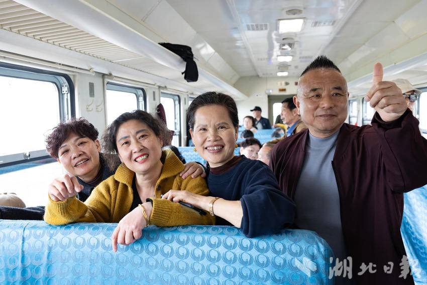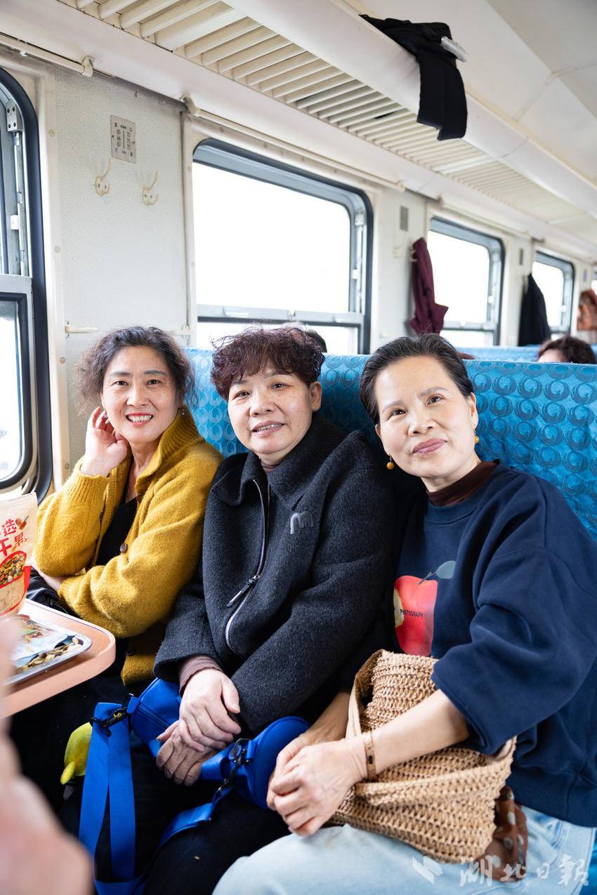 2026年3月31日,从武汉东开往武汉东的武汉普速环线列车上座无虚席,大批市民游客前来体验绿皮车环游武汉。车上有人带茶,有人发呆,有人就静静地靠在窗边,有人热闹地拍照留念,他们不是在坐车,也许是在给自己一点—什么都不用做的时间,在这趟绿皮车上武汉人找到了属于自己的时光记忆。(湖北日报全媒记者 何宇欣 摄)