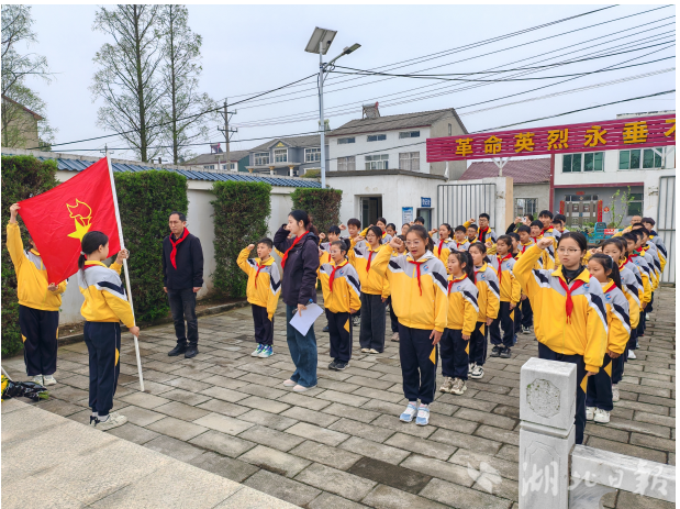 湖北钟祥市柴湖镇小学开展清明祭扫英烈活动