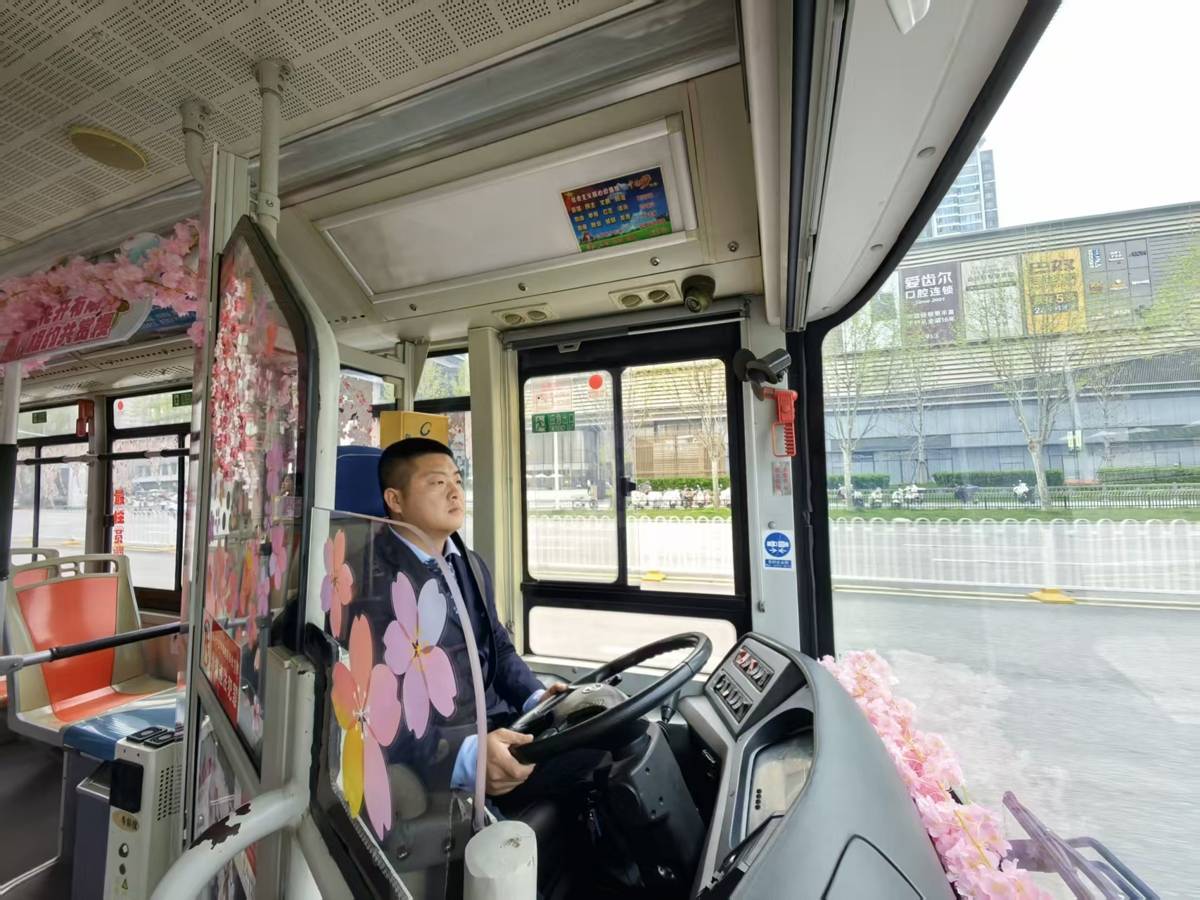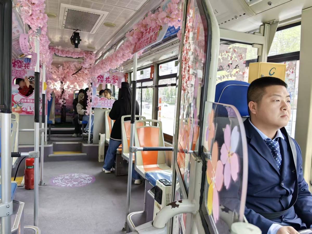 这不仅仅是一次交通出行,更是一场可沉浸、可互动的春日浪漫体验。乘客可以在车厢的“樱花树下”打卡留念,记录美好瞬间。当车辆行经中山大道芦沟桥、北京路中山大道、沿江大道科技馆等樱花绚烂的街区时,司机师傅会特意平稳驾驶、减速慢行,力求让车厢内的馥郁芬芳与窗外的繁花似锦相映成趣,最大化满足市民游客踏青赏花的春日情怀,实现“车在画中行,人在画中游”的独特意境。