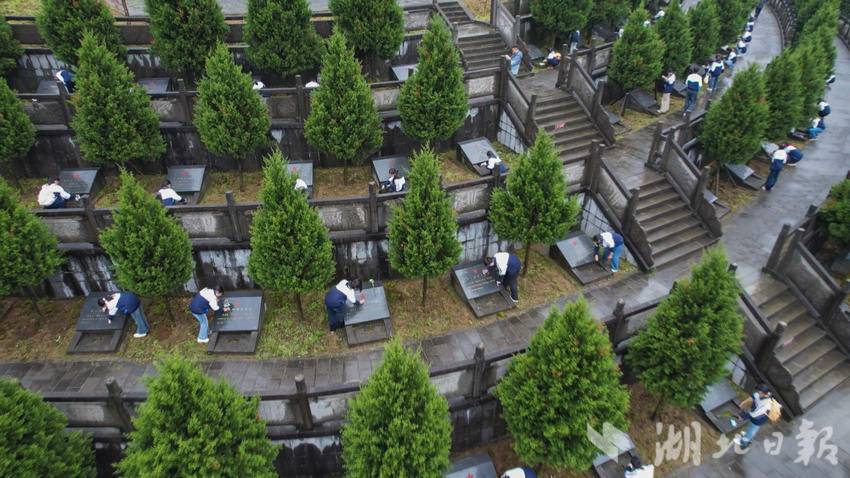 默哀仪式结束后,师生们俯身擦拭烈士墓碑,清除周边杂草,用最朴素的方式守护英烈安息之地。随后,大家依次瞻仰烈士纪念碑,聆听工作人员讲述革命先烈的英勇事迹。一段段峥嵘岁月的回忆、一个个可歌可泣的故事,让在场师生深受震撼。