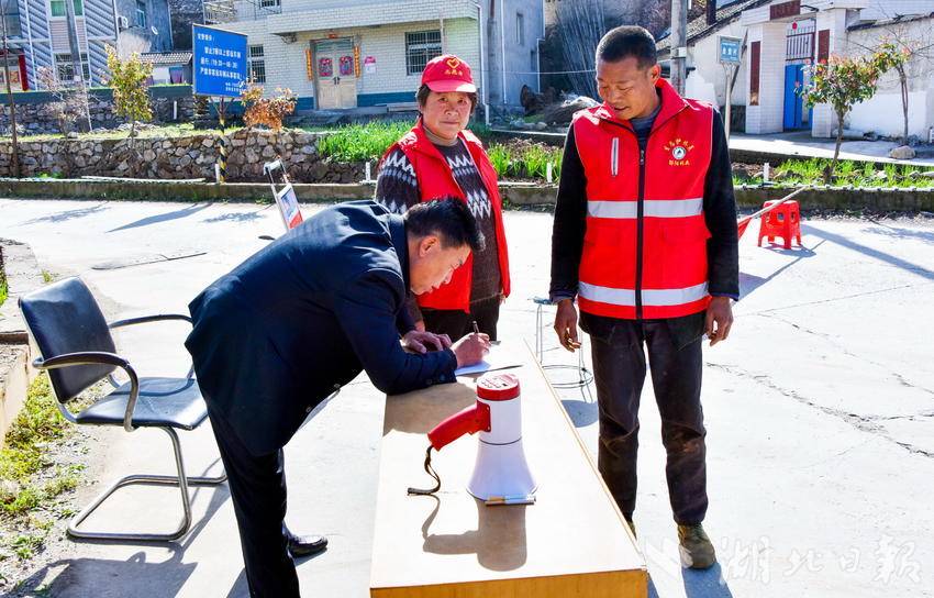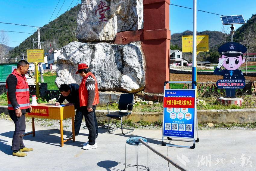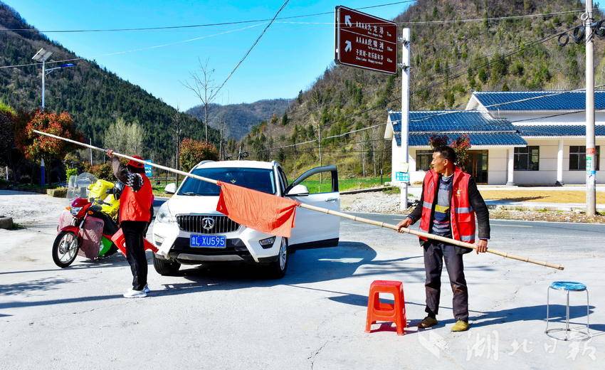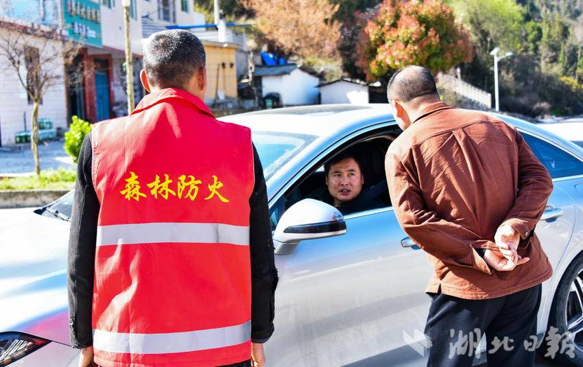 4月1日,十堰市郧阳区大柳乡金堂村15名森林防火护林员在各自路口上值班,对进出车辆进行信息登记,劝导清明节前文明上坟,安全用火,人走火灭,保护森林资源。