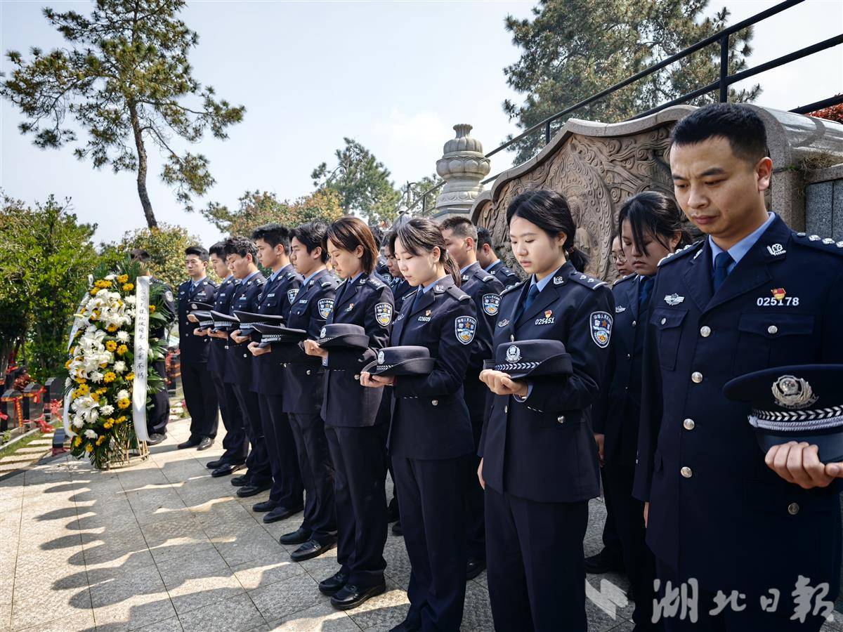 “尊敬的纪所长,我是案件办理队张道宇,现在向您汇报工作。”4月1日上午,在武汉市石门峰纪念公园纪汉同志墓地前,纪汉先锋队民警代表们献花、鞠躬。他们在墓碑前久久伫立,向这位带领大家一路成长、打击犯罪的好所长,汇报一年来工作的点点滴滴。
