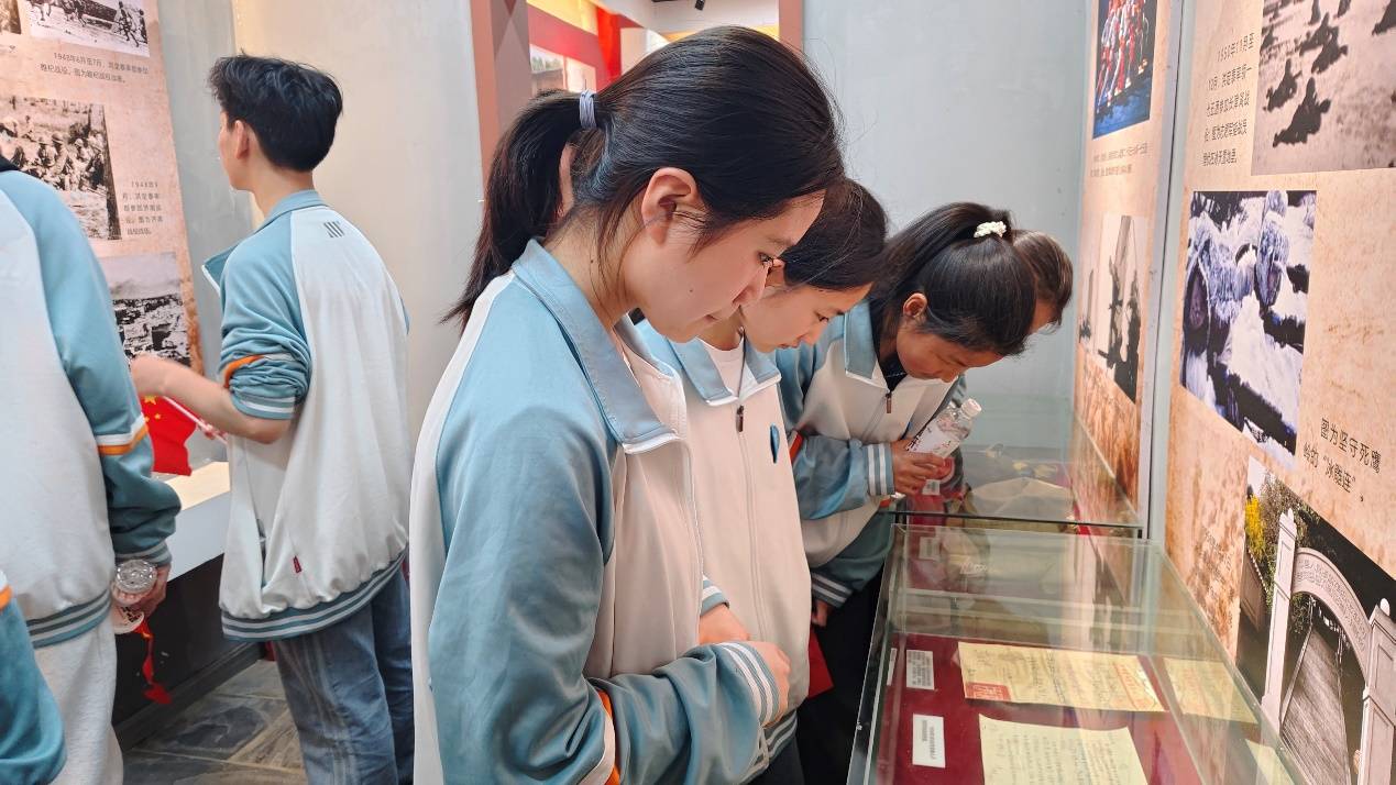 上午9时,旧街新集中学40名师生代表手握小国旗和鲜花,在老师的指引下,首先向依次为陈列室的100多位革命烈士献花、鞠躬默哀,然后,分别在陈列室四个展室聆听讲解员讲解4名烈士的英勇事迹。