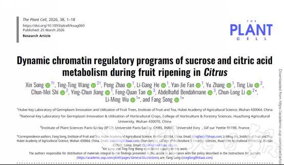 柑橘风味品质的核心成分是蔗糖和柠檬酸。在柑橘成熟过程中,蔗糖含量持续上升而柠檬酸逐渐降解,二者之间的动态平衡直接决定柑橘口感。过去,学界多认为柑橘的糖、酸性状由不同的基因独立调控,对糖酸协同调控的分子机制研究较少。
