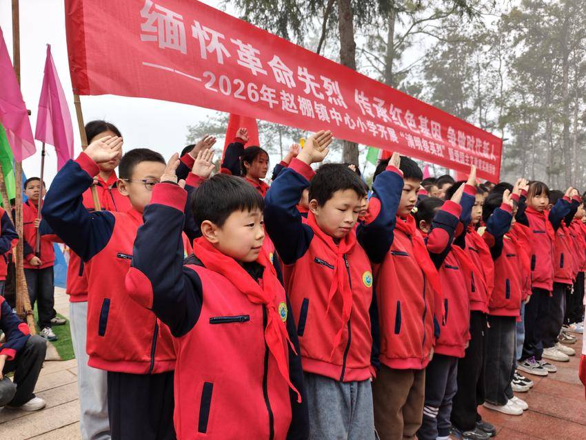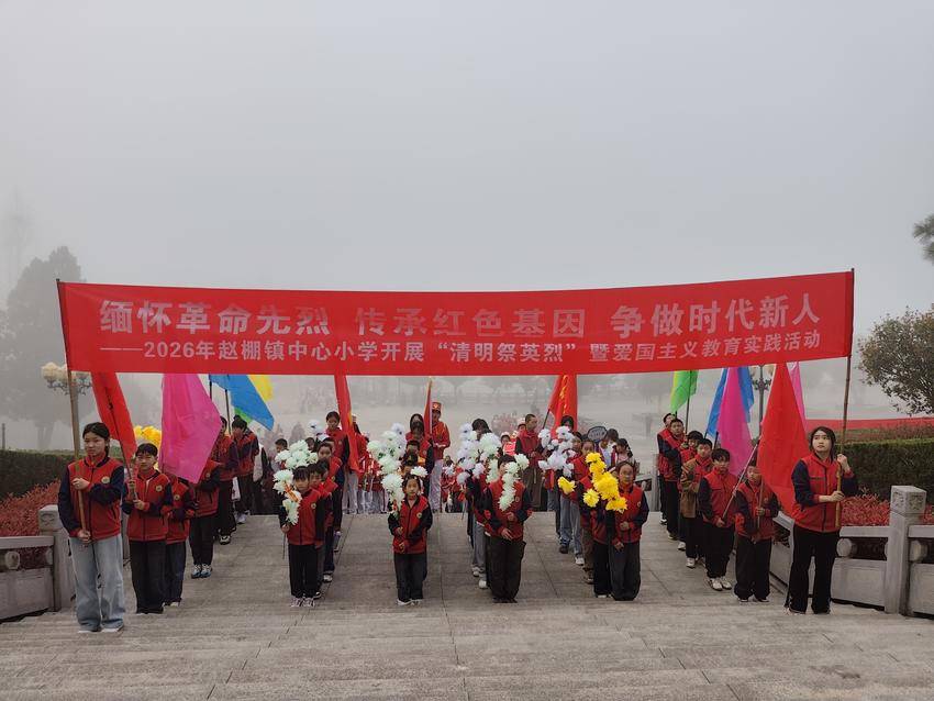 湖北日报讯(通讯员白步云、苏易雪)4月1日,赵棚镇中心小学组织全体师生来到赵家棚抗日烈士陵园,开展“清明祭英烈”文明实践活动,通过“仪式教育+实地瞻仰+延伸实践”的形式,为学生们带来一堂生动的“红色思政课”。