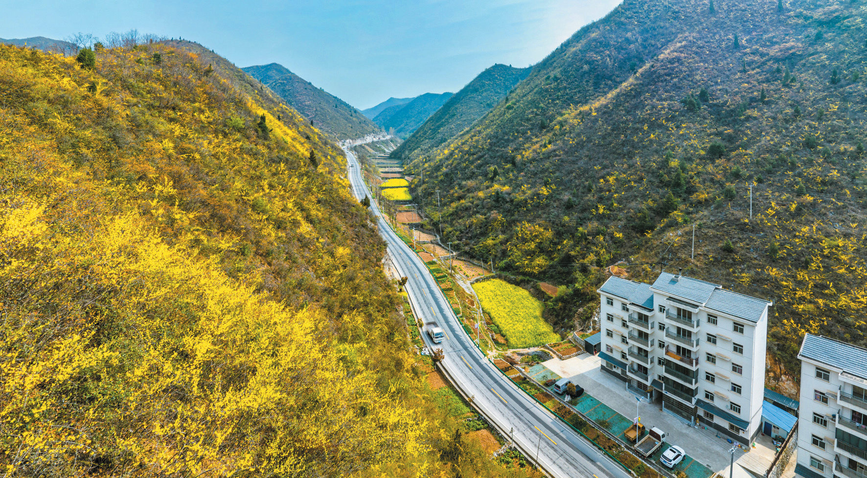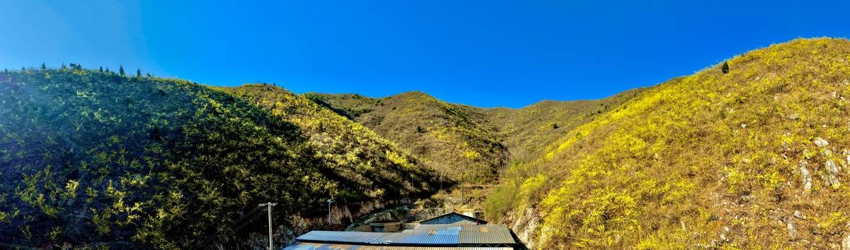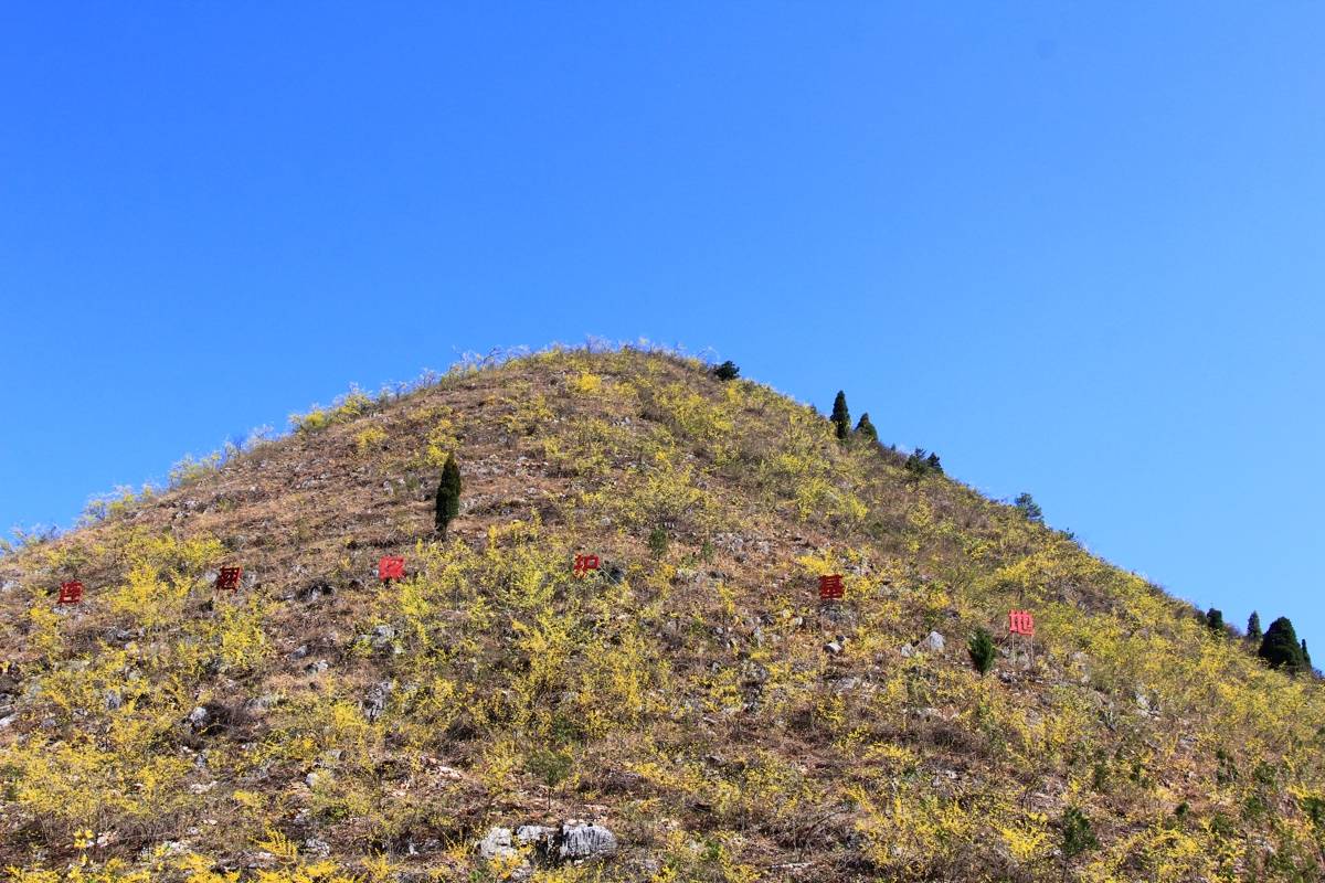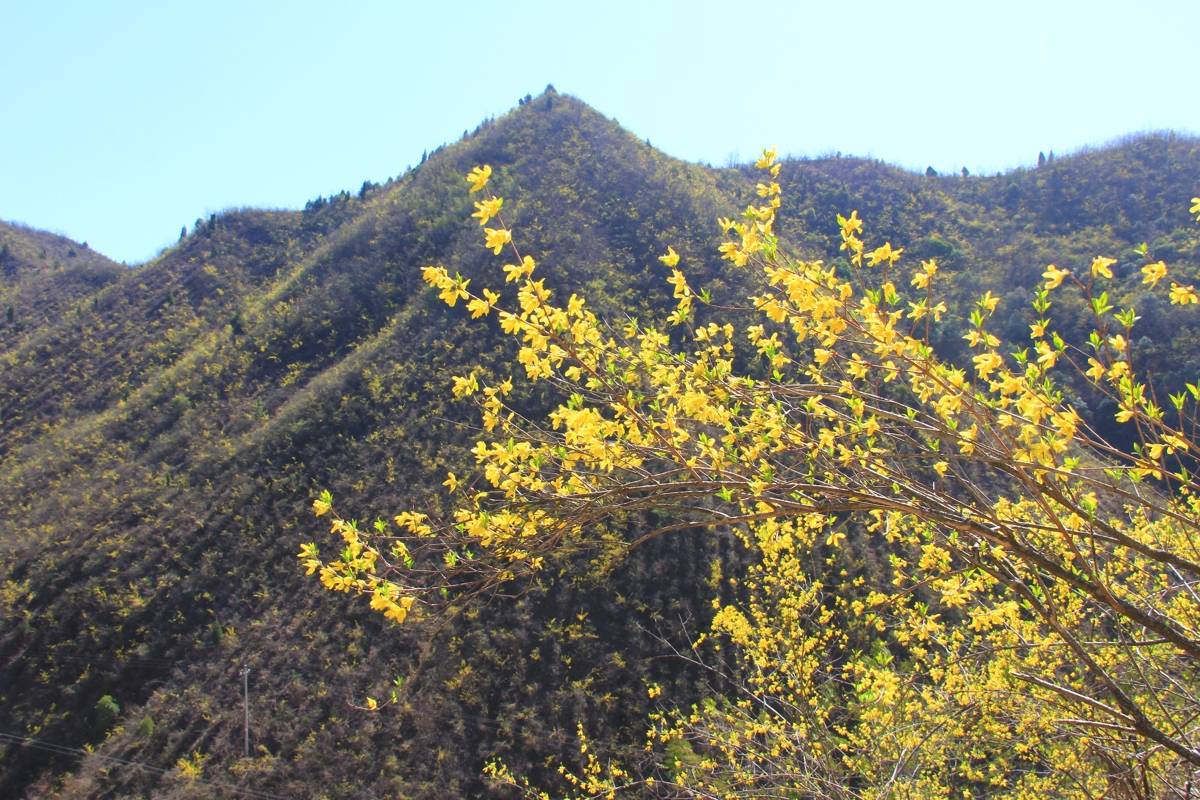 十堰市郧阳区大柳乡,漫山的连翘花摇曳枝头,将山坡装扮的金灿灿。