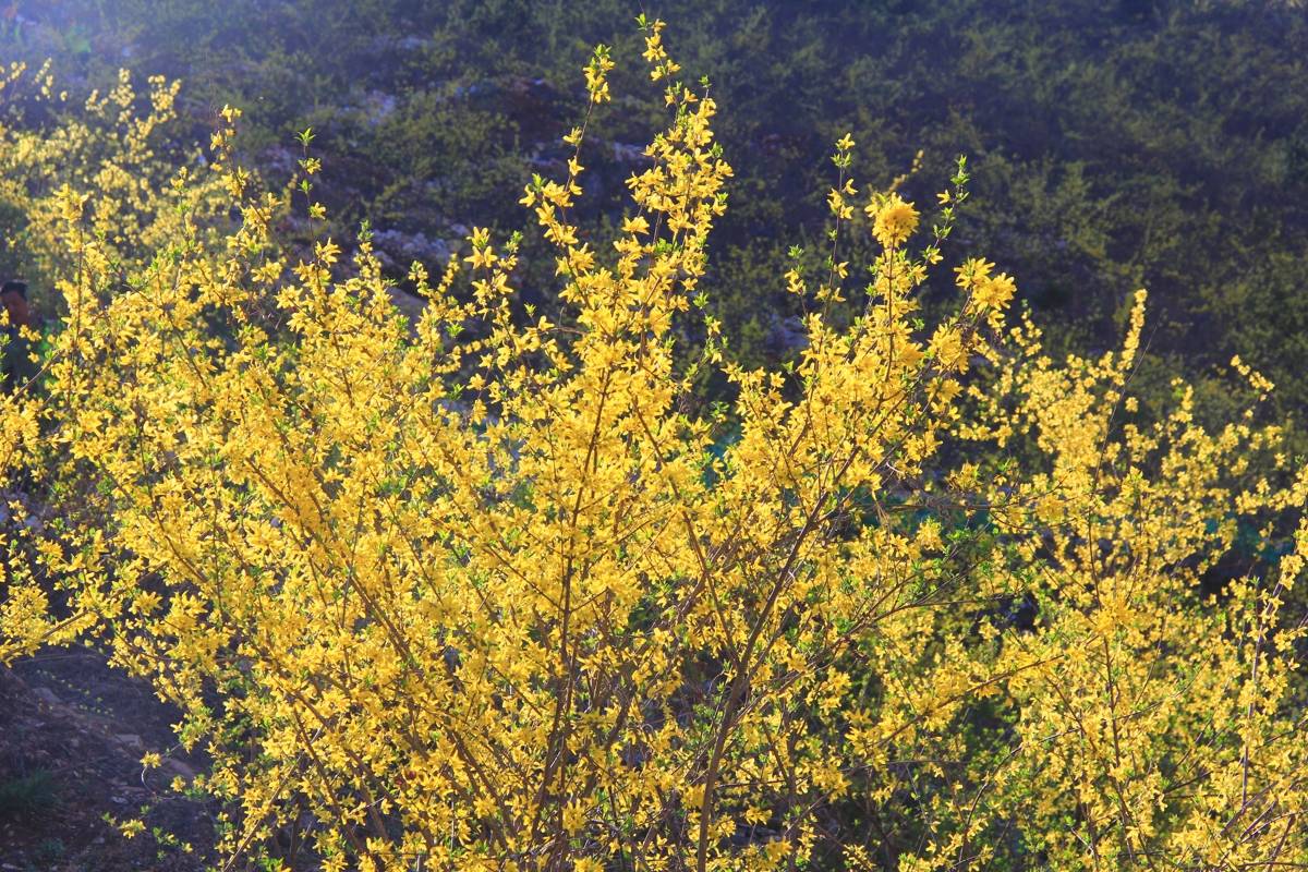 “一到连翘盛花期,每天都有游客前来赏花。”该村党支部书记孙臣举介绍,连翘开花早,花期长,从山下至山顶依次盛开,时间从3月一直持续到4月,引得周边游客前来“打卡”。
