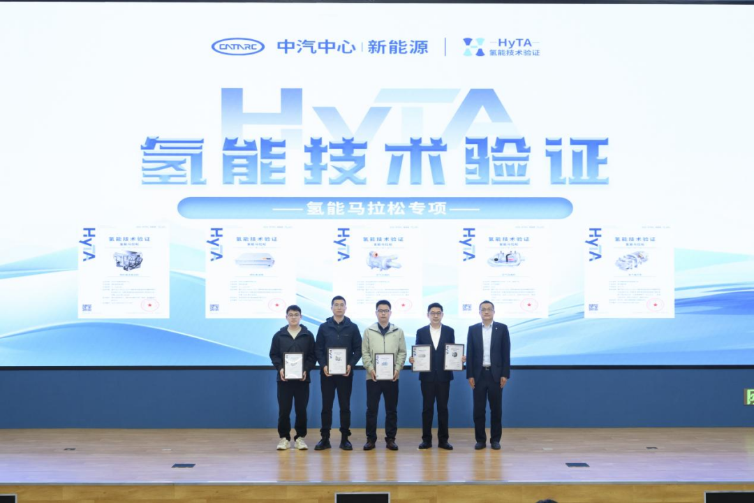 湖北日报讯(记者左晨、通讯员王怡琳)3月30日,中汽研新能源汽车检验中心(天津)有限公司“氢能技术验证(HyTA)——氢能马拉松”专项进展发布会在天津举行。东风汽车集团有限公司(以下简称“东风汽车”)自主研发的H₂・Core 350燃料电池堆与H₂・One 300燃料电池系统两款核心产品,双双通过严苛验证,荣获两项HyTA权威验证证书,成为本次验证中唯一荣获“双证书”的整车企业。