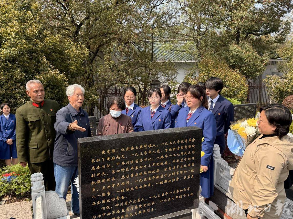 当日,他和学校各学院团总支书记、青马工程班学员及“逐梦领航”学生宣讲团成员等70名师生前往黄麻起义和鄂豫皖苏区纪念园开展“追寻·2026·清明祭英烈”主题教育活动,偶遇了专程来祭扫的红安籍开国少将袁克服的女儿及家人。