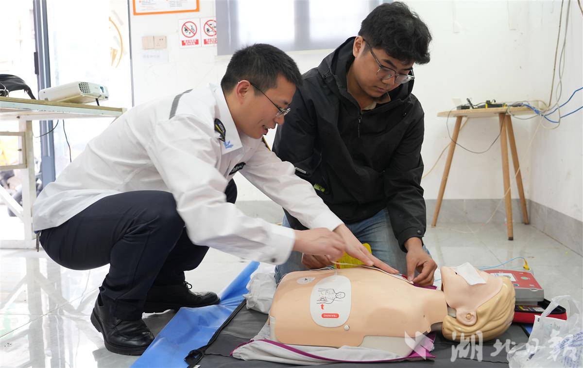 湖北日报讯(记者龙华、通讯员吕惠、宋蒙)“胸外按压位置在两乳头连线中点,深度5到6厘米,每分钟100到120次……”4月1日下午,在武汉市江岸区安静社区红艳村饿了么驿站,一场面向外卖骑手的心肺复苏培训正在进行。武汉亚洲心脏病医院急诊科副主任医师钟建利带着医护团队,为这群奔波在街头的小哥讲解急救知识与操作要领。