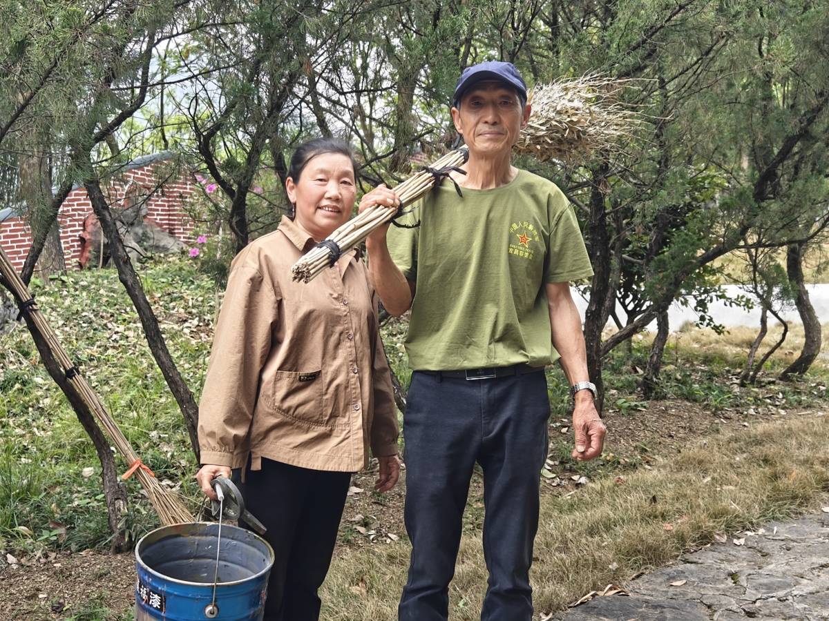 陈清国负责清扫,赵廷枚则负责除草和擦拭。