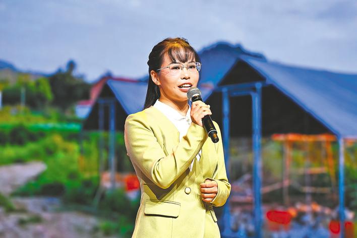 新农人田淑娴在活动现场深情讲述科技赋能农业的故事。 (湖北日报全媒记者 任勇 摄)